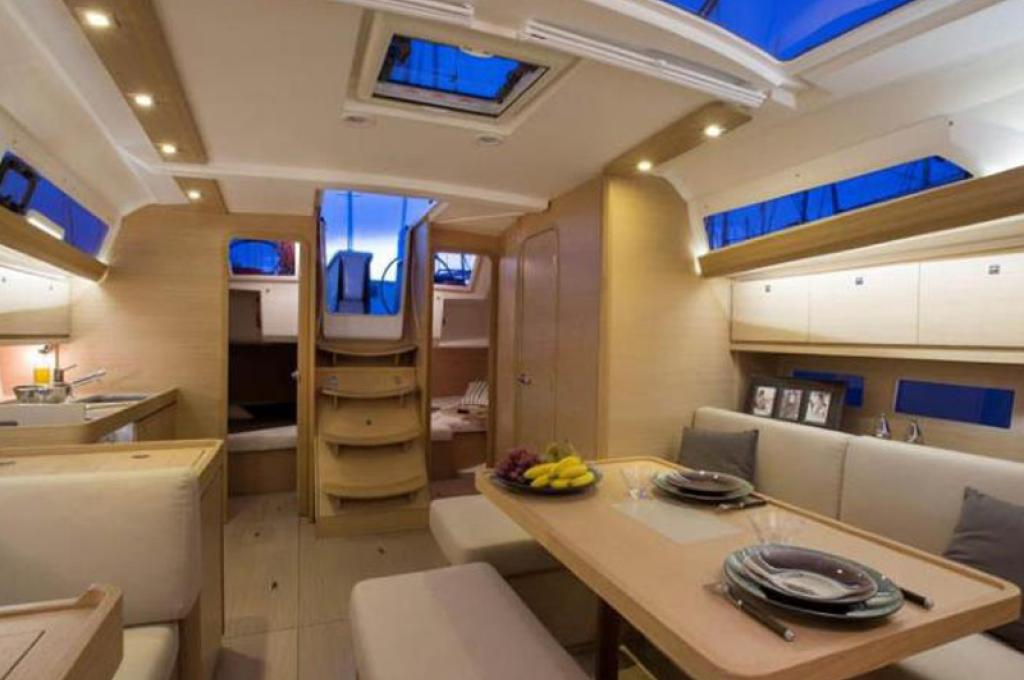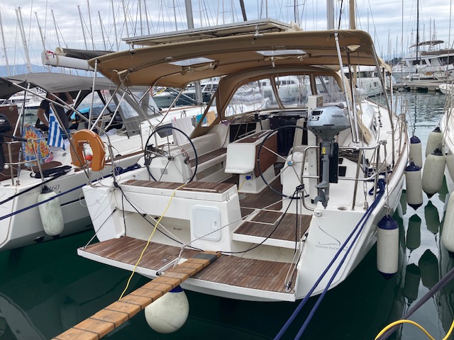 | Outside | 220 V-Landanschluss, Badeplattform, Biminitop, Cockpitdusche warm/kalt, Cockpittisch (klappbar), Solaranlage, Sprayhood |