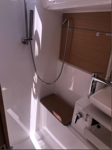 | Outside | 220 V-Landanschluss, Badeplattform, Biminitop, Cockpitdusche warm/kalt, Cockpitlautsprecher, Cockpittisch (klappbar), Gas-Barbecue-Grill im Cockpit, Solaranlage, Sprayhood |