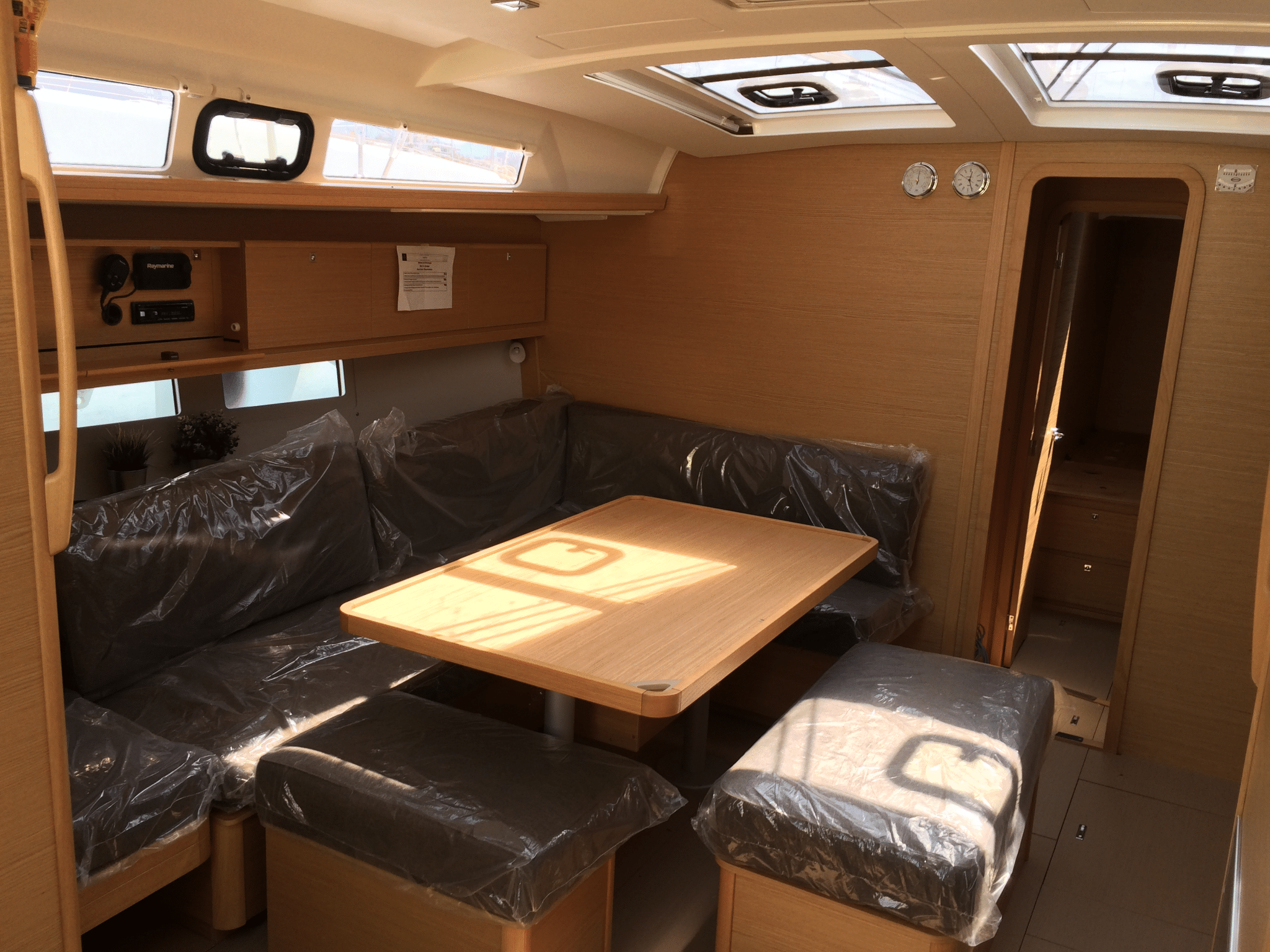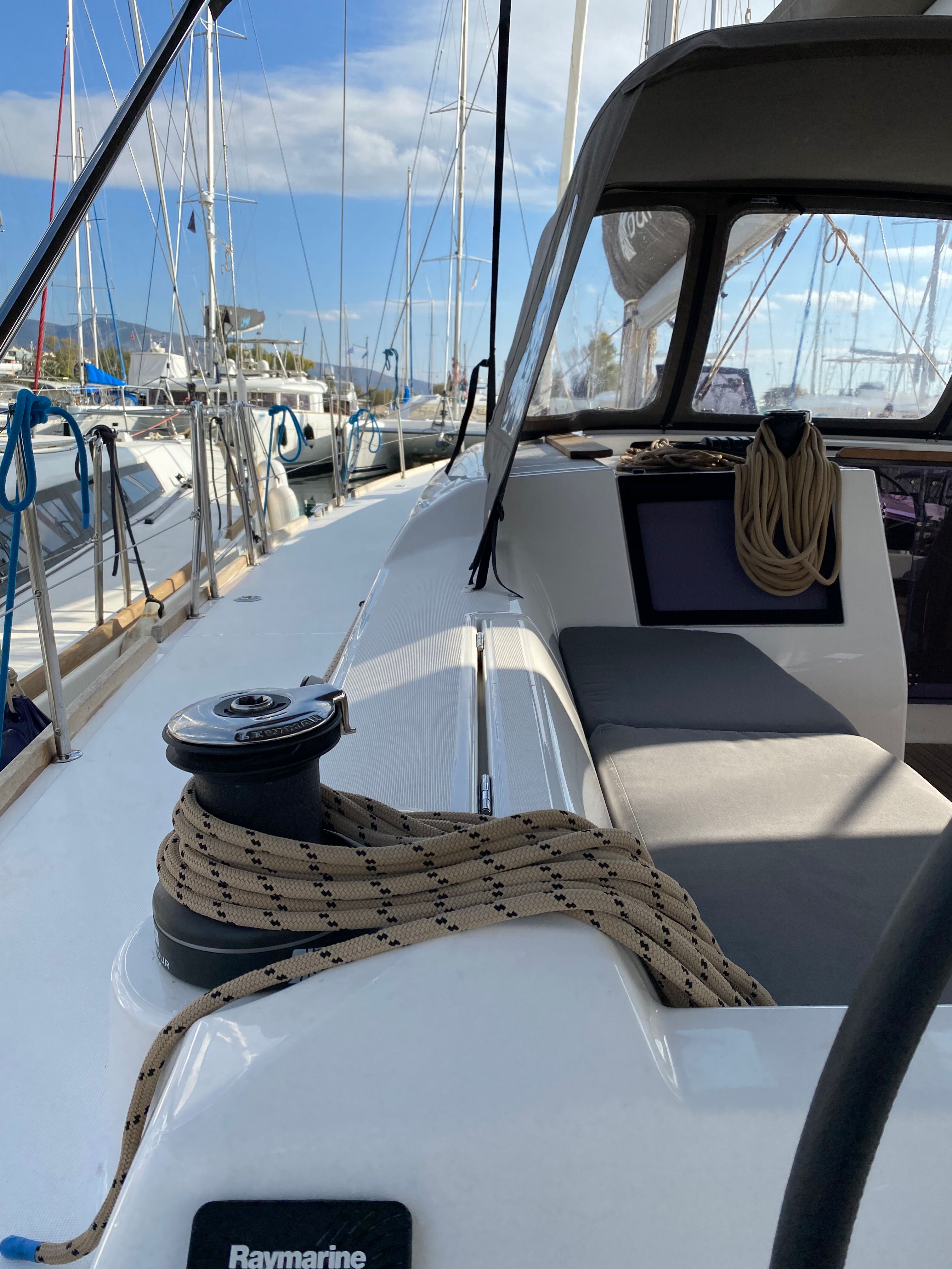 | Outside | 220 V-Landanschluss, Badeleiter, Badeplattform, Biminitop, Cockpitdusche warm/kalt, Cockpitlautsprecher, Cockpittisch (klappbar), Cockpittisch mit Eisbox, Gas-Barbecue-Grill im Cockpit, Solaranlage, Sprayhood |