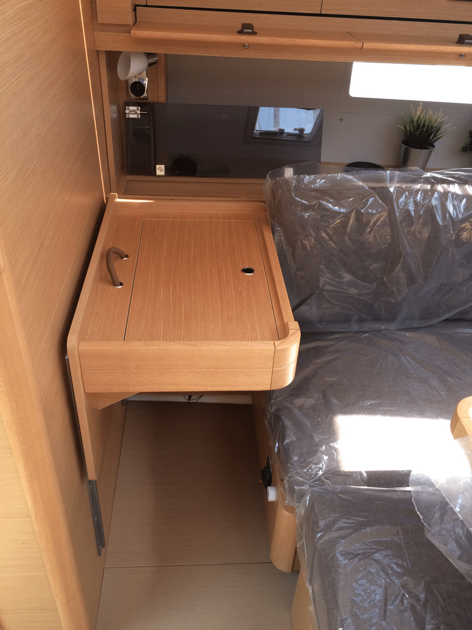 | Inside | 12V Steckdose, 220V Steckdosen, Inverter 12V/220V, Kühlschrank, Salontisch absenkbar, Warmwasser, Wasserkocher, Weinkühlschrank |