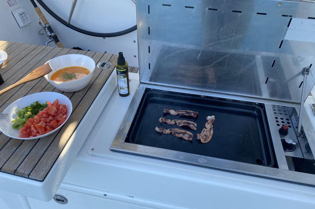Schiff im Prinzip gut aber nicht ganz sauber ( Böden, Toiletten, Deck) und ständiger Ausfall der „nice to Haves“ Seewasserpumpe, Hydr. Badeplattform, Grill kaum funktionsfähig. Wurde allerdings auf Nachfrage schnell repariert (auch über Kontakte in Häfen).