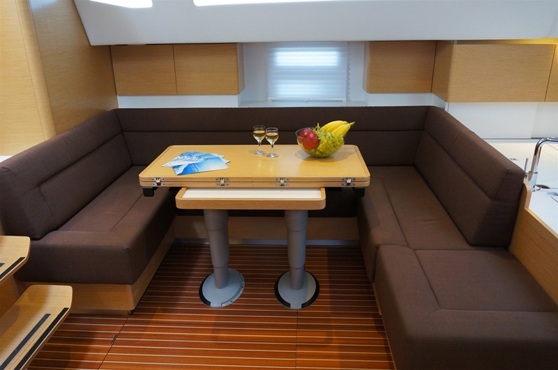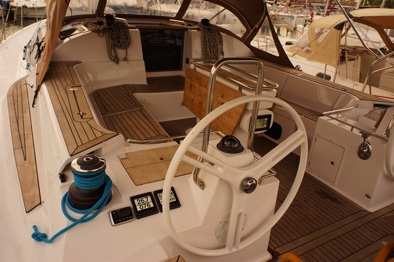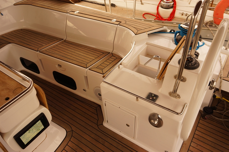 | Outside | 220 V-Landanschluss, Badeplattform, Biminitop, Cockpitdusche warm/kalt, Cockpitlautsprecher, elektr. Ankerwinsch, Solaranlage, Sprayhood, Teak auf Badeplattform, Teak im Cockpit |