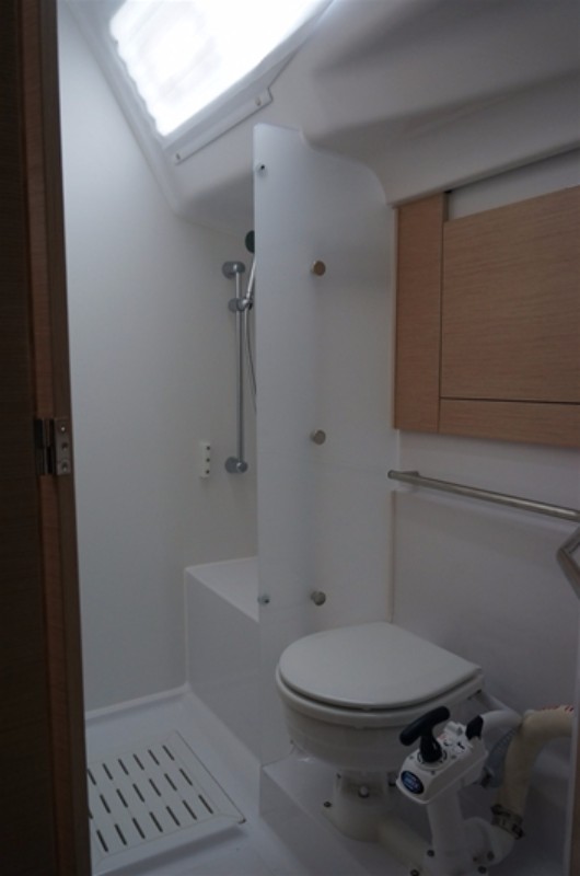 Leider Reff 2 falsch eingefädelt und damit nicht nutzbar, ist beim Check-In nicht aufgefallen, da wir das Groß nicht im Hafen getestet haben. Sonst nichts größeres zu beklagen. Die Elan Impression 45 hat im Vergleich zur Bavaria 45 Cruiser wenig Stauraum.