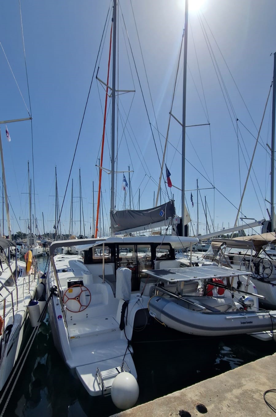 Der Vercharterer unterteilt seine Flotte in Klassen nach Baujahr – Prestige (1-3 Jahre alt), Class (4-5 Jahre alt), Economy (älter als 6 Jahre) – Innerhalb dieser Klassen garantiert uns der Vercharterer kein festes Baujahr und behält sich die Option vor, die Yacht zu tauschen.