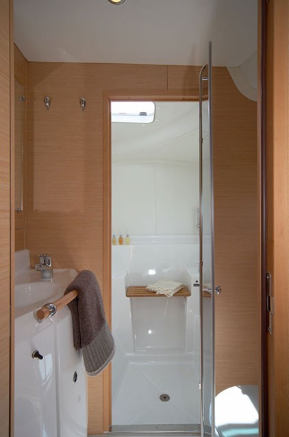 | Outside | Badeleiter, Biminitop, Cockpitdusche, Cockpitpolster, Cockpittisch, elektr. Ankerwinsch, Kuchenbude, Solaranlage, Sprayhood |