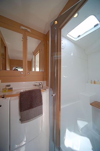| Navigation | Echolot, GPS mit Kartenplotter im Cockpit, GPS mit Kartenplotter im Salon, Navigationsbesteck, Seekarten, Sumlog, Windmesser |