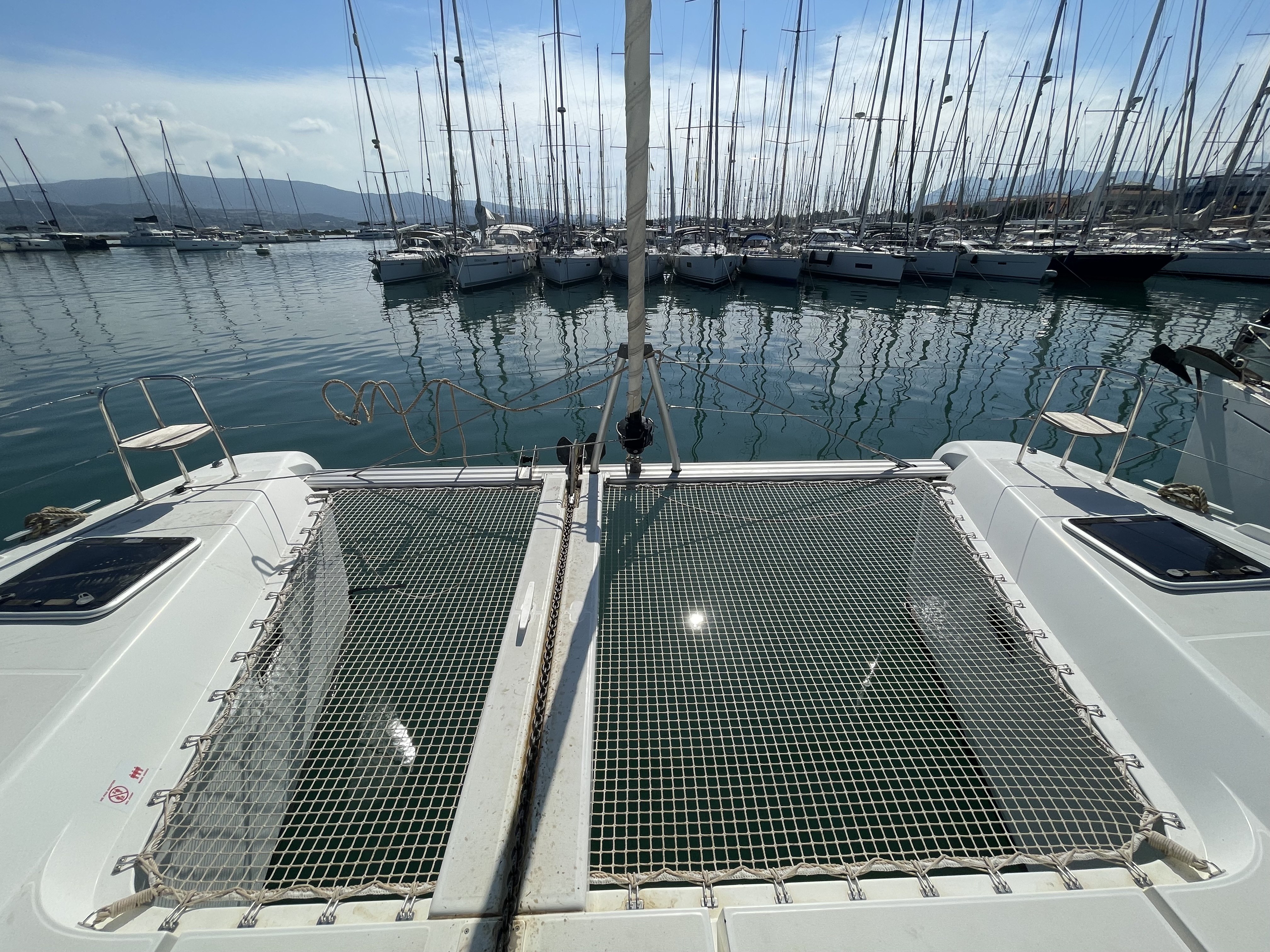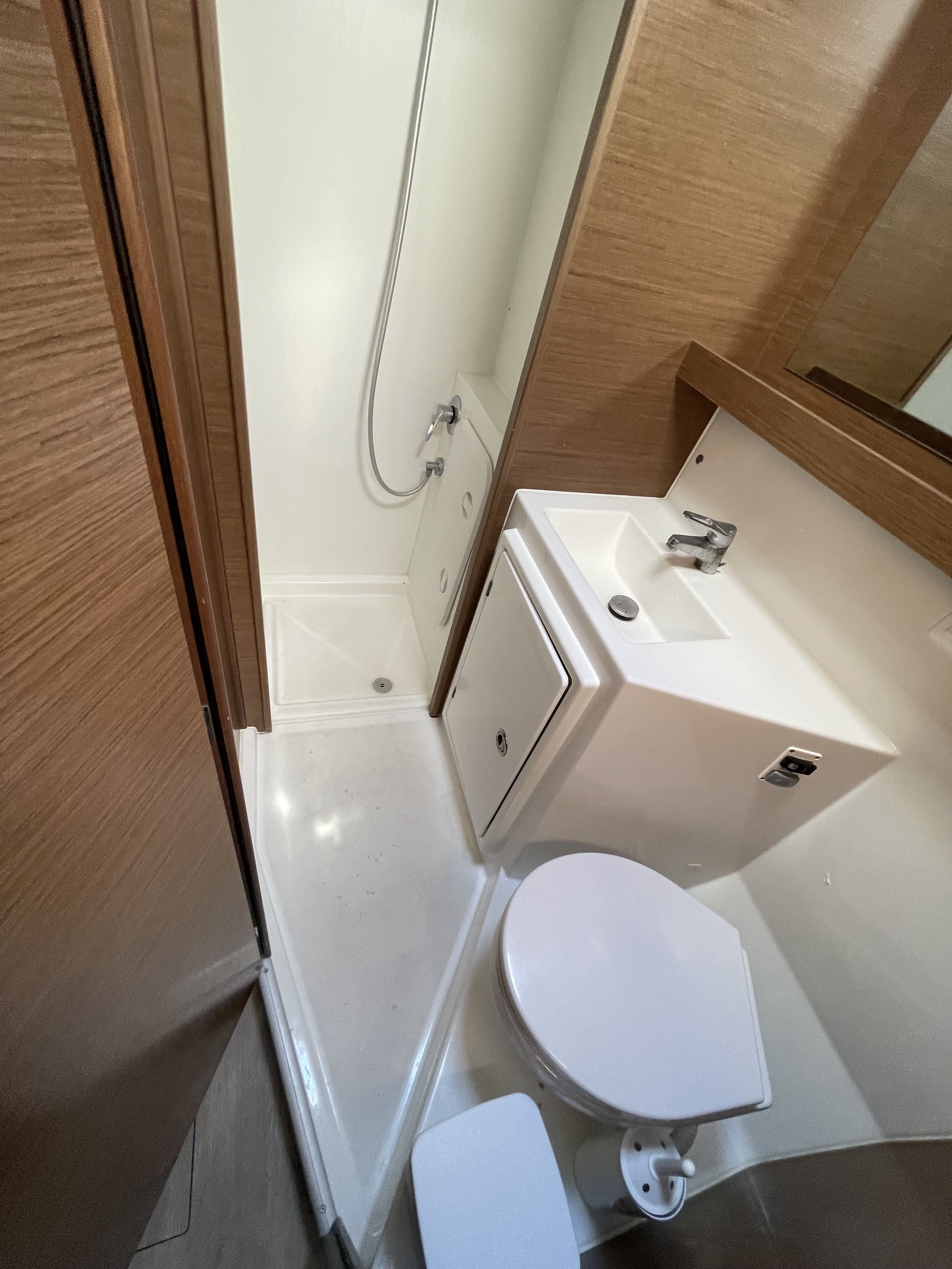 | Inside | 2. Kühlschrank, Backofen, Gasherd, Inverter 12V/220V, Kühlschrank, Ladegerät, Radio, Salontisch absenkbar, USB Steckdosen in den Kabinen, Ventilatoren in Salon und Kabinen, Watermaker, WC (elektr.) |