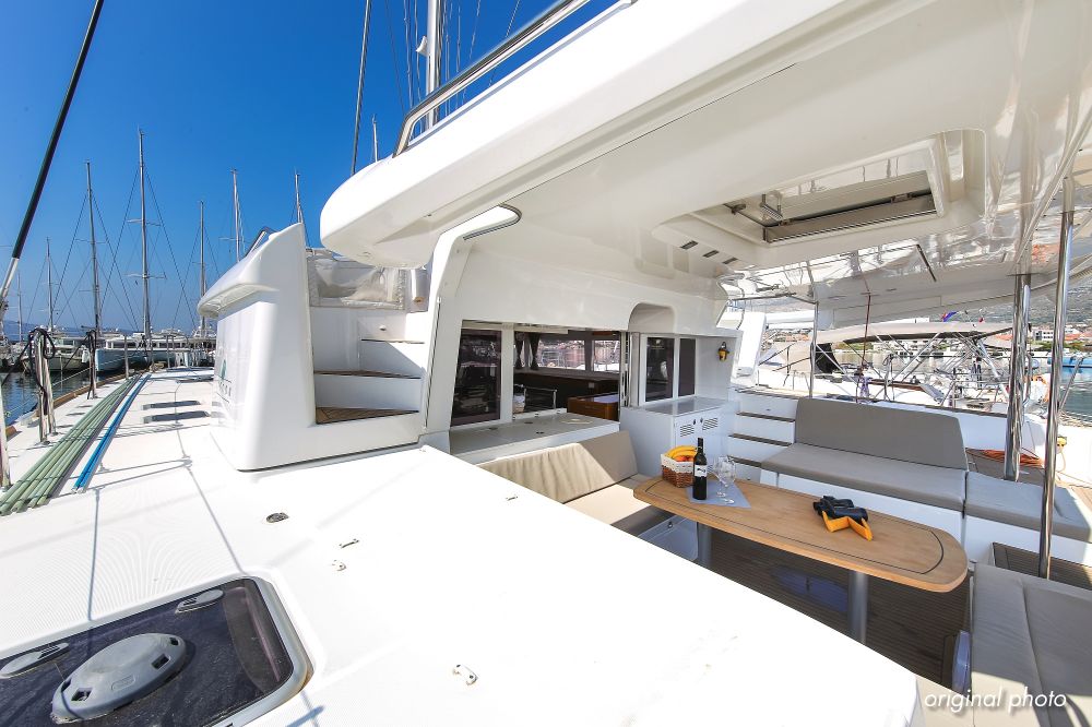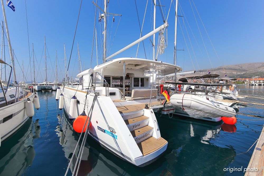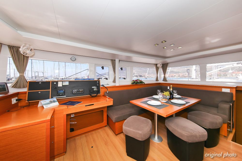 | Inside | 2. Kühlschrank, Borduhr, Dusche, Flexschott, FUSION Sound System, Gasherd, Heizung, Inverter 12V/220V, Kühlschrank, Ladegerät, Luftpumpe für Beiboot, Nespresso-Maschine, Pantryausstattung, Radio mit CD und AUX-Eingang, Salontisch absenkbar, Toaster, USB Steckdose, Ventilatoren in Kabinen, Warmwasser, WC (elektr.) |