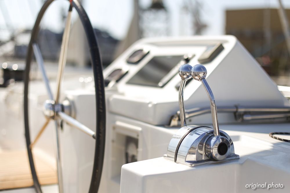 | Outside | 220 V-Landanschluss, Anker mit Kette, Ankerwinsch, Biminitop, Bootshaken, Cockpitdusche, Cockpitkühlschrank, Cockpitlautsprecher, Cockpitpolster, Cockpittisch, Davits, Dieselkanister , elektr. Ankerwinsch, elektr. Genuawinsch, elektr. Winsch, Faltpropeller, Fender, Fernsteuerung für elektr. Ankerwinsch, Festmacherleinen, Gangway, Kugelfender, Kunststoff-Eimer (Pütz), Solaranlage, Teak im Cockpit, Wantenschneider, Wasserkanister , Wasserschlauch, Windex |