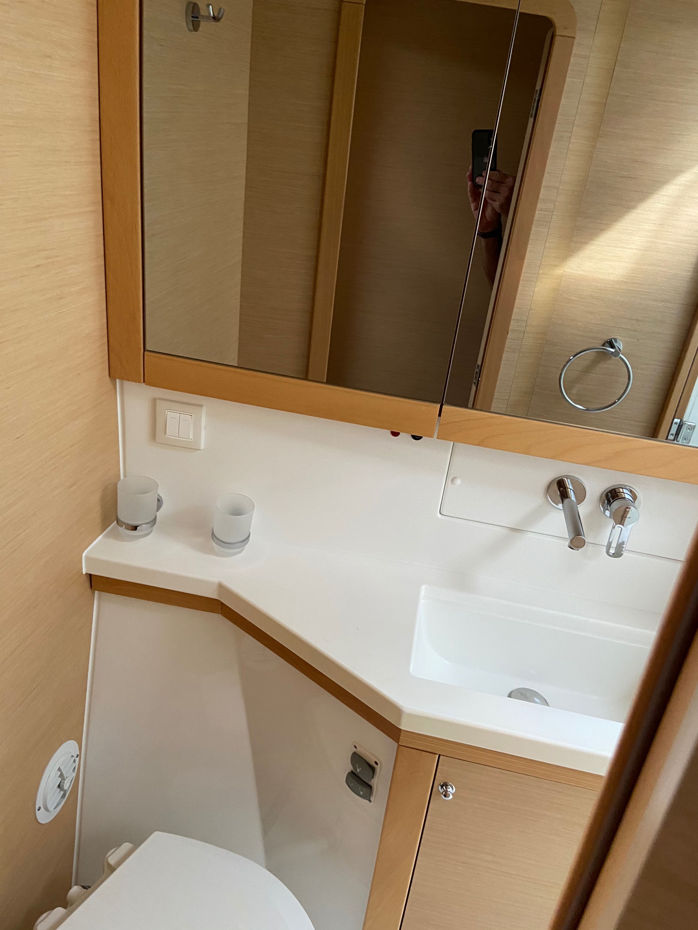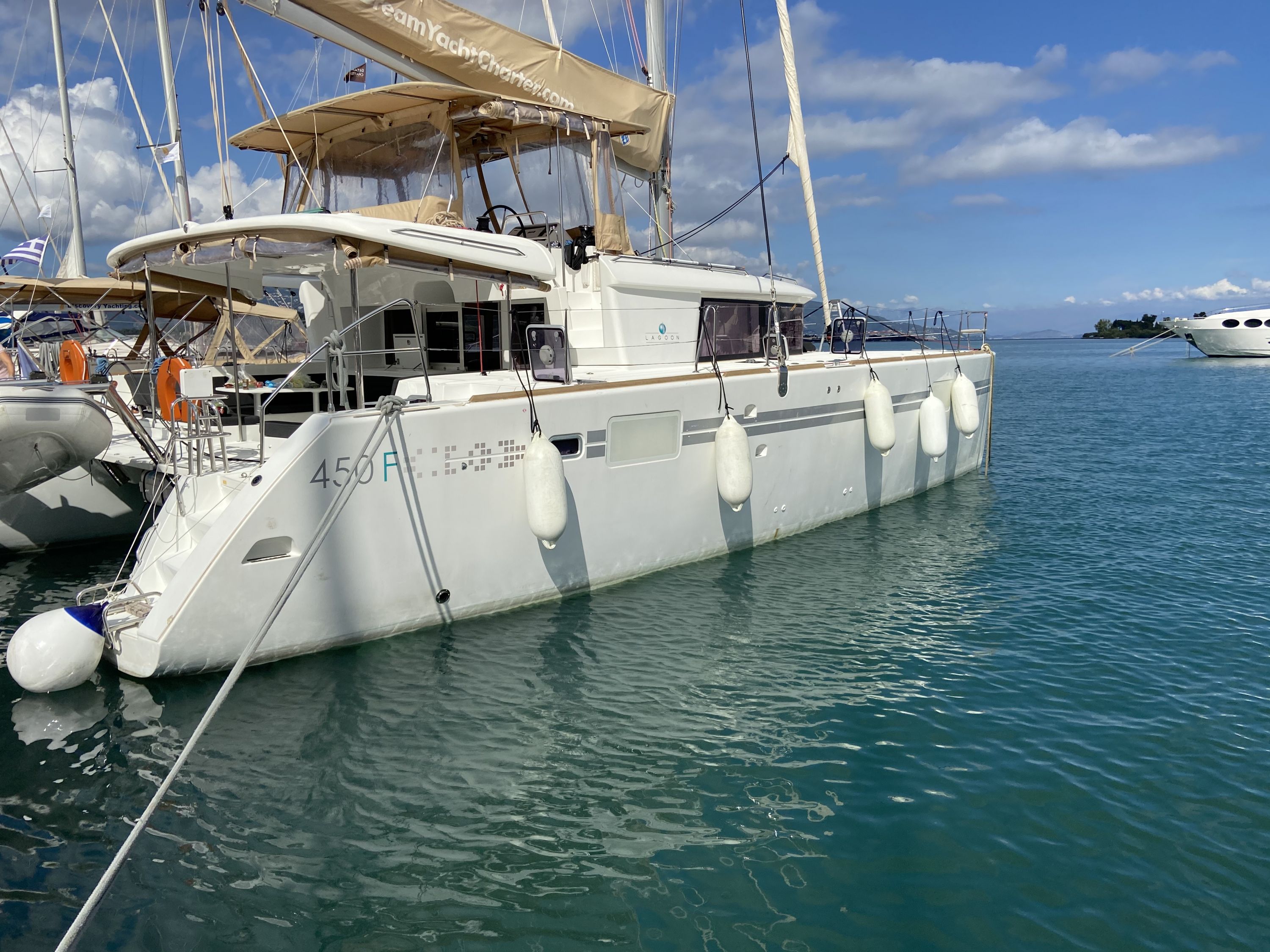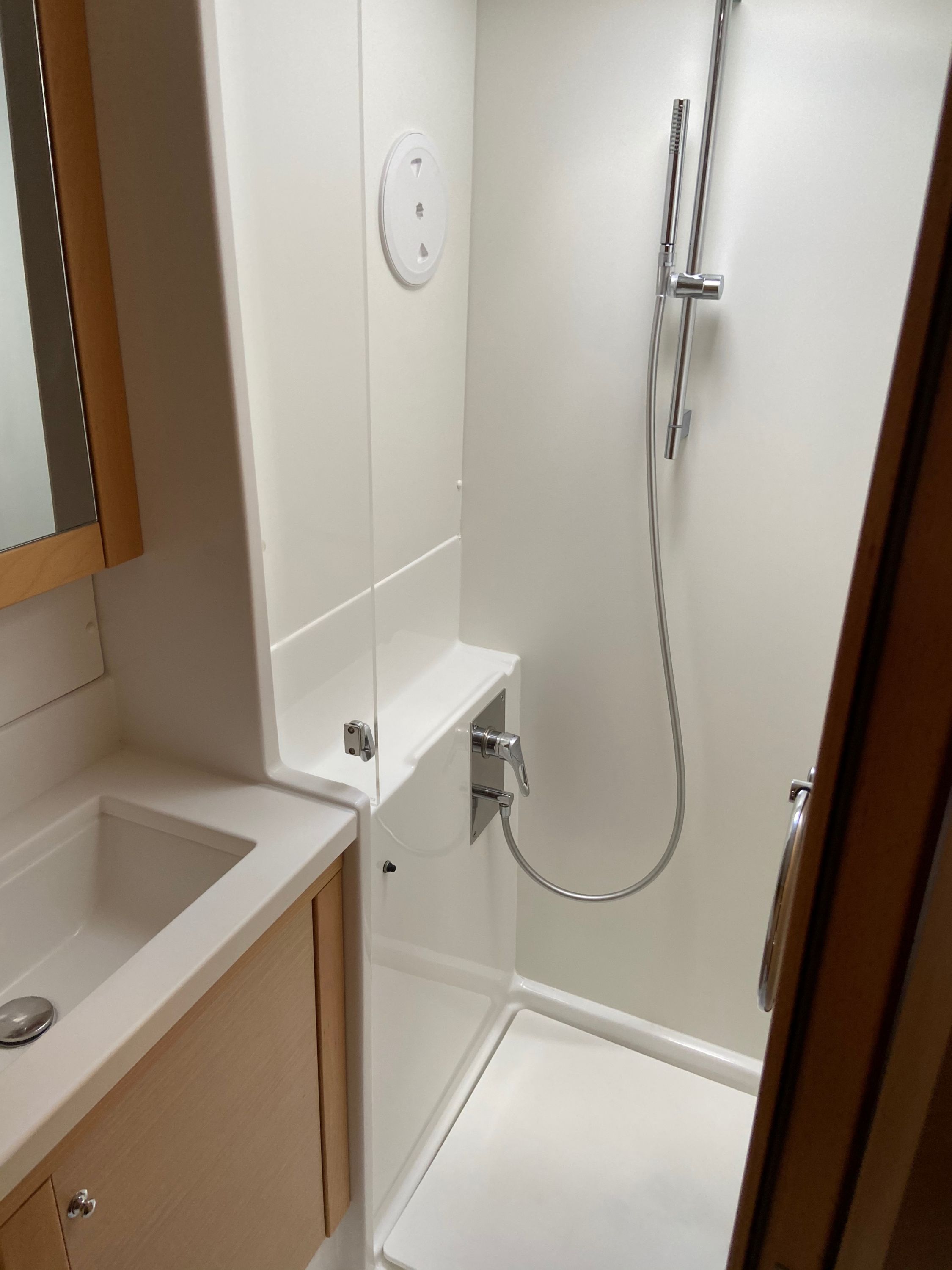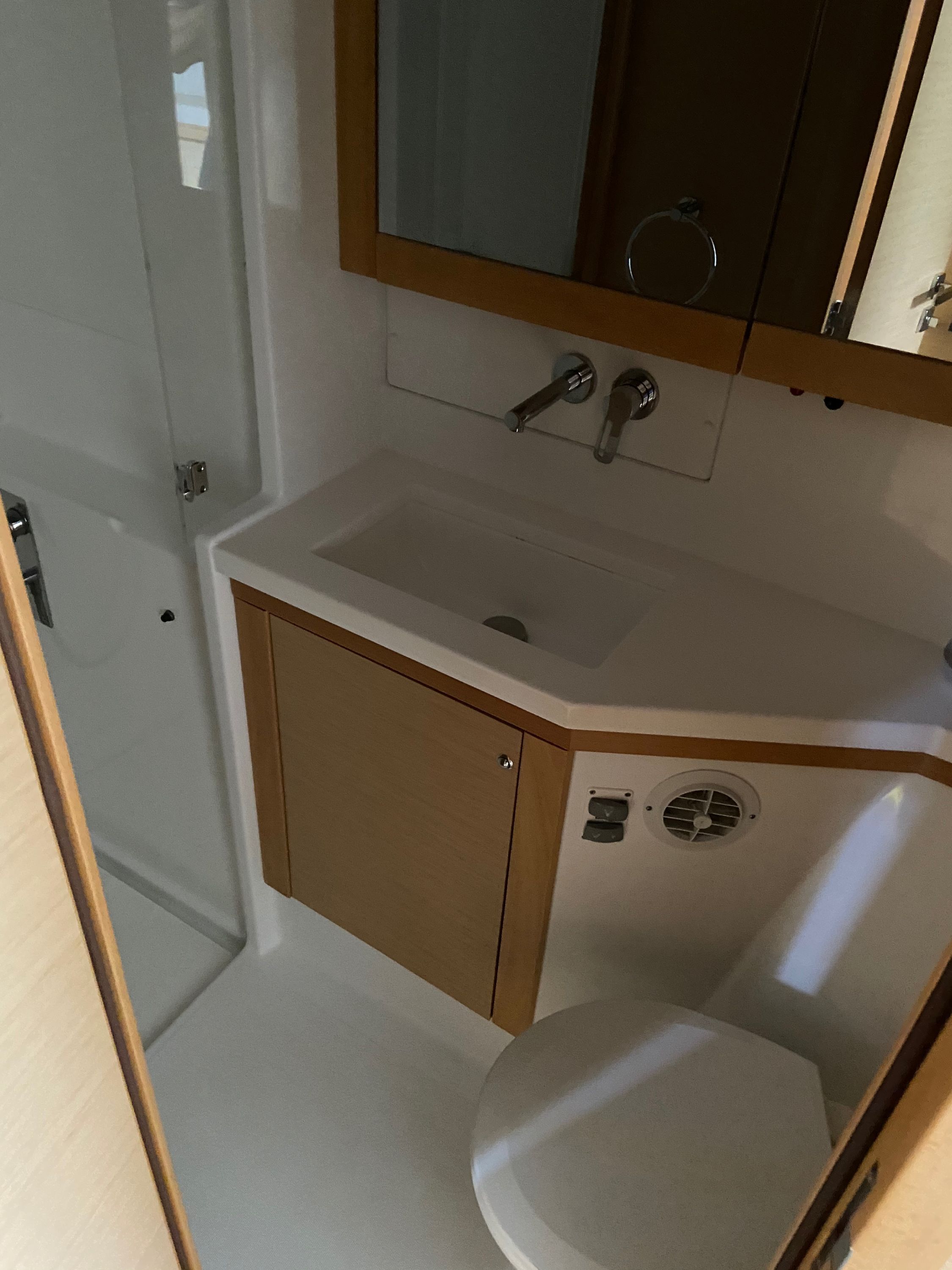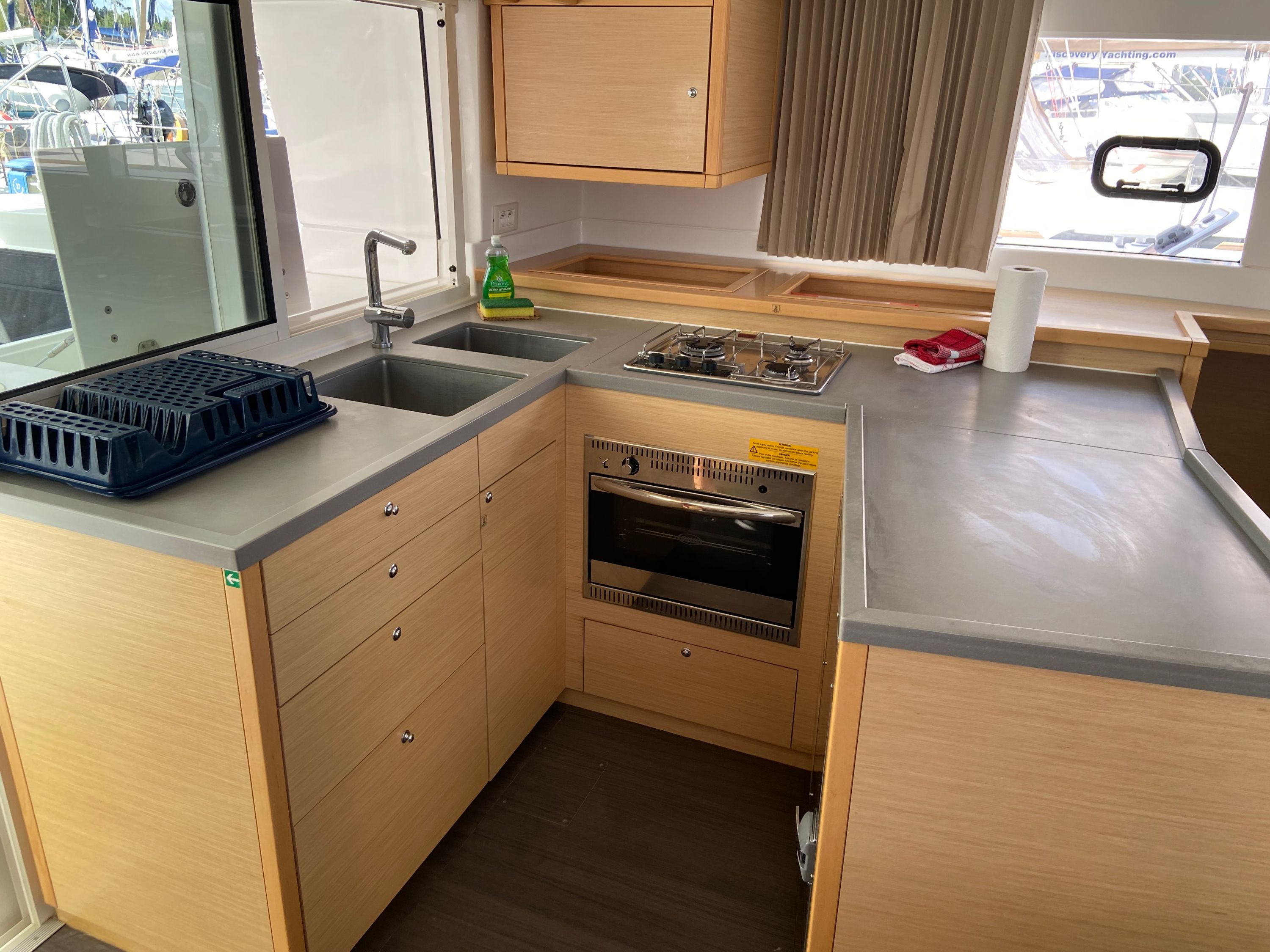 | Inside | 2. Kühlschrank, Backofen, Gasherd, Generator, Inverter 12V/220V, Klimaanlage (Landstrom), Kühlschrank, Ladegerät, Salontisch absenkbar, USB Steckdosen in den Kabinen, Ventilatoren in Kabinen, Watermaker, WC (elektr.) |