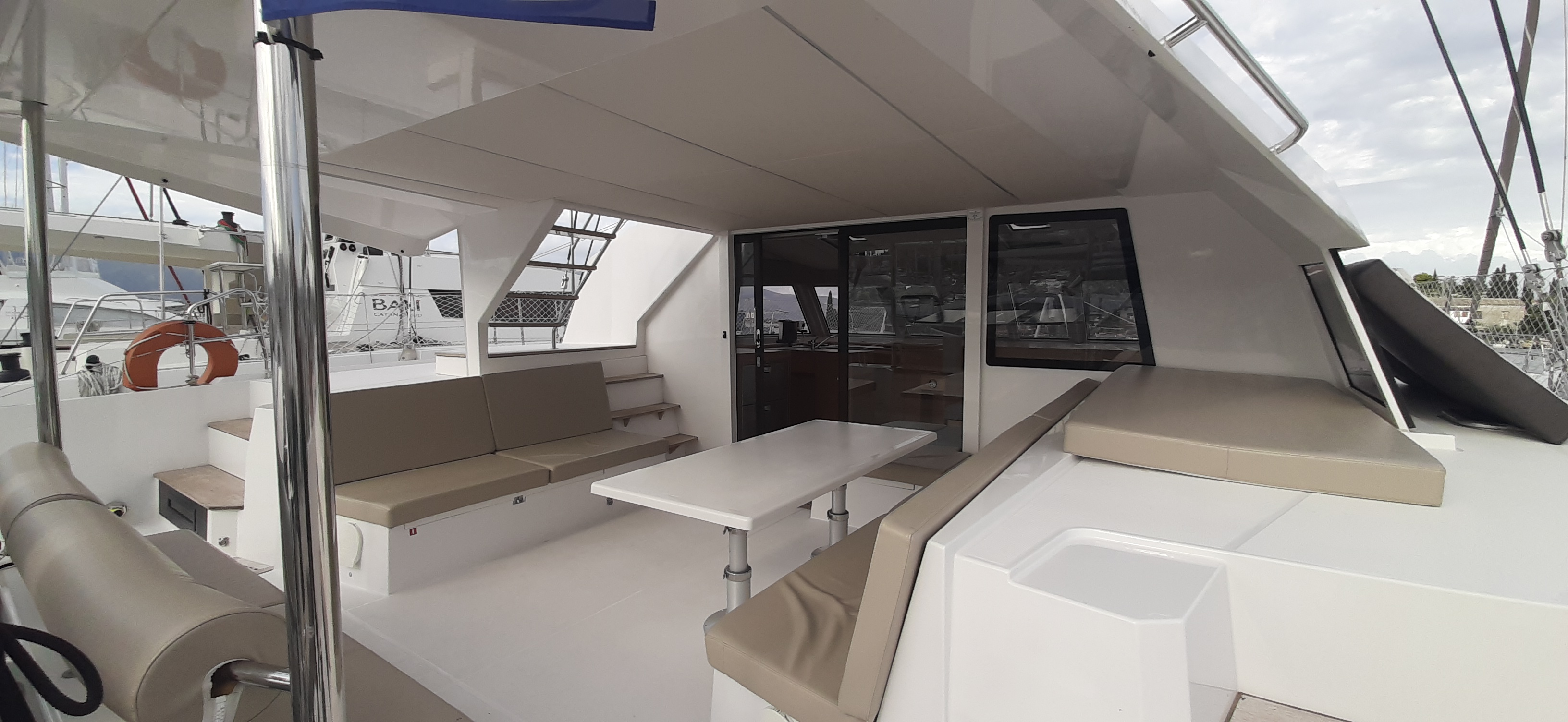 Anker mit Kette, Badeleiter, Biminitop, Cockpitleuchte, Cockpitpolster, Cockpittisch, Davits, Deckbürste, elektr. Ankerwinsch, Fender, Festmacherleinen, Flybridge, Kunststoff-Eimer (Pütz), Solaranlage, Treibanker, Wasserschlauch |