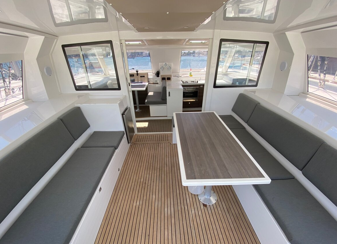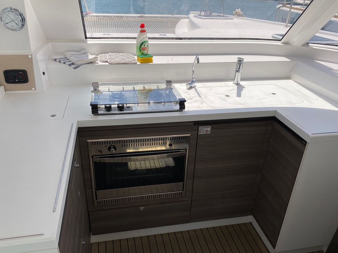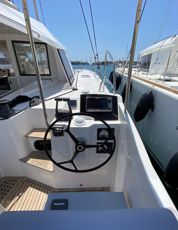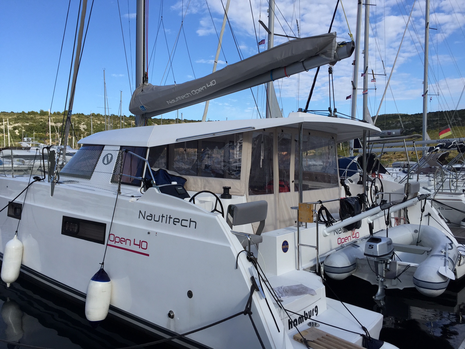 | Outside | 12 V-Anschluss, Anker mit Kette, Badeleiter, Badeplattform, Cockpitdusche, Cockpitlautsprecher, Cockpittisch, elektr. Ankerwinsch, Fender, Festmacherleinen, Gangway, Solaranlage, Teak im Cockpit, Treibanker, Wasserschlauch, Windex, Winschen |
