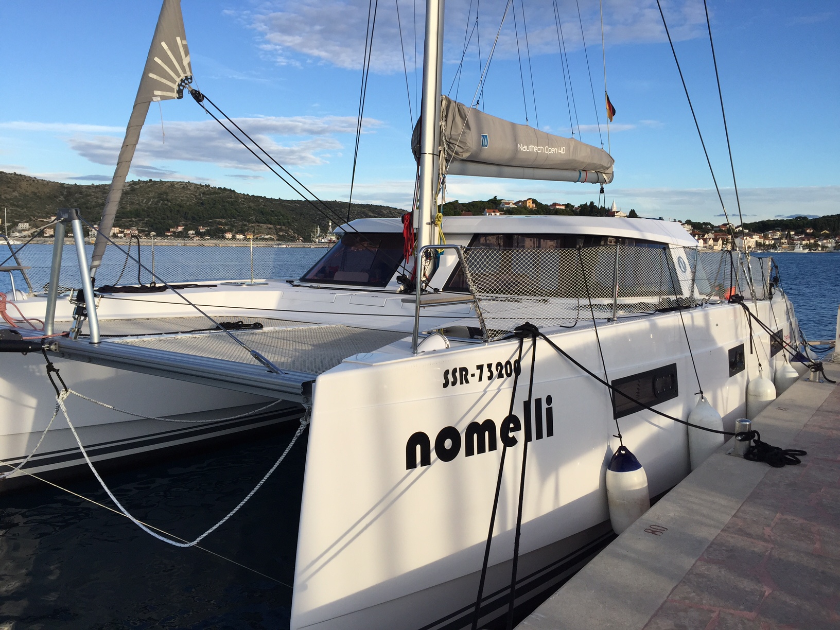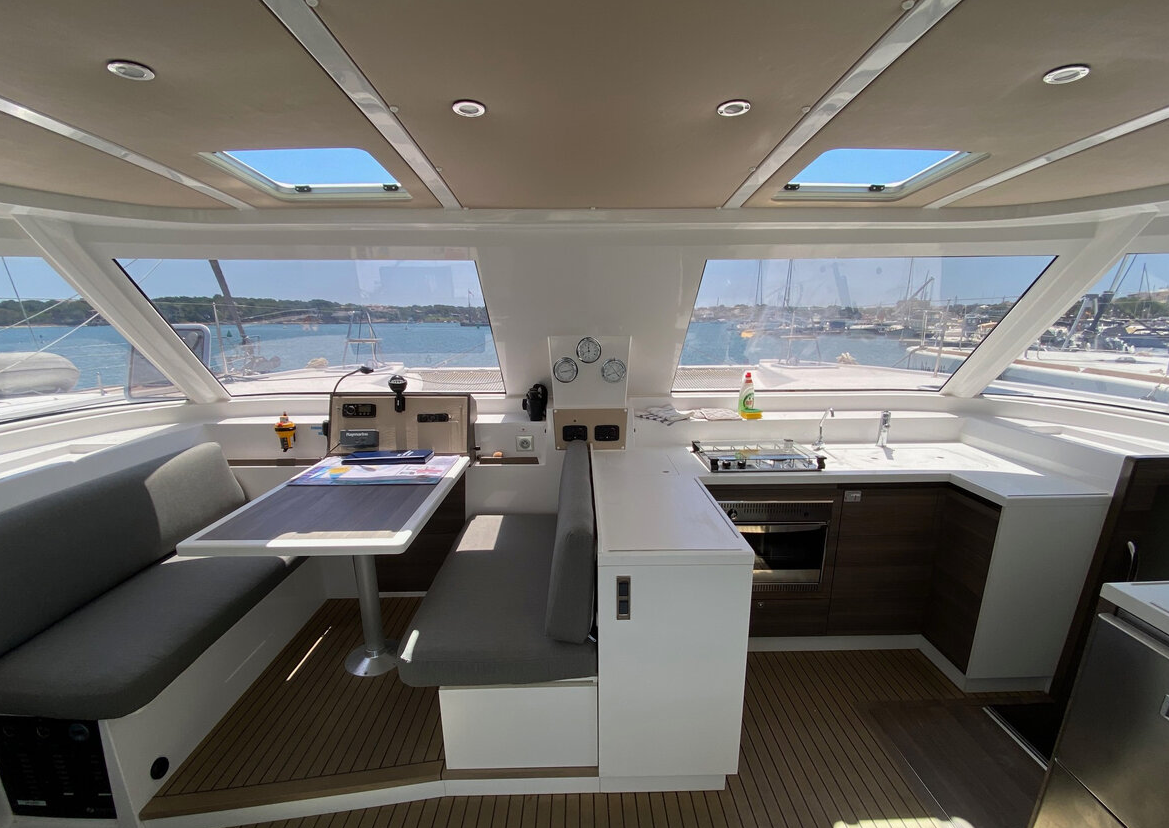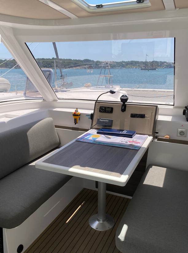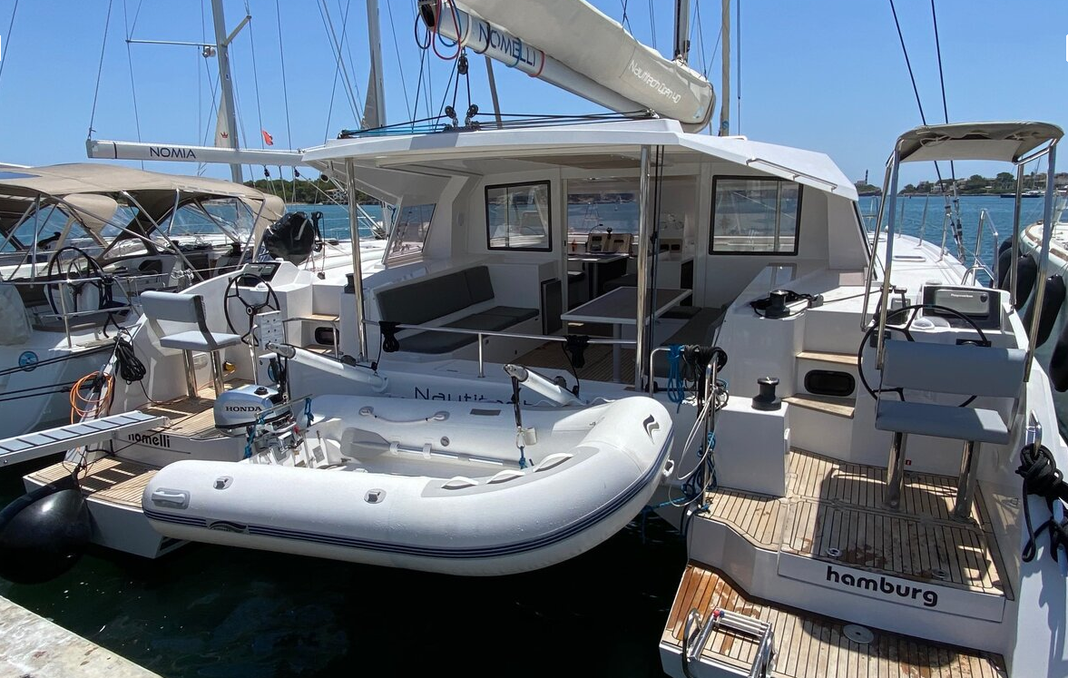 | Outside | 12 V-Anschluss, Anker mit Kette, Badeleiter, Badeplattform, Cockpitdusche, Cockpitlautsprecher, Cockpittisch, elektr. Ankerwinsch, Fender, Festmacherleinen, Gangway, Solaranlage, Teak im Cockpit, Treibanker, Wasserschlauch, Windex, Winschen |
