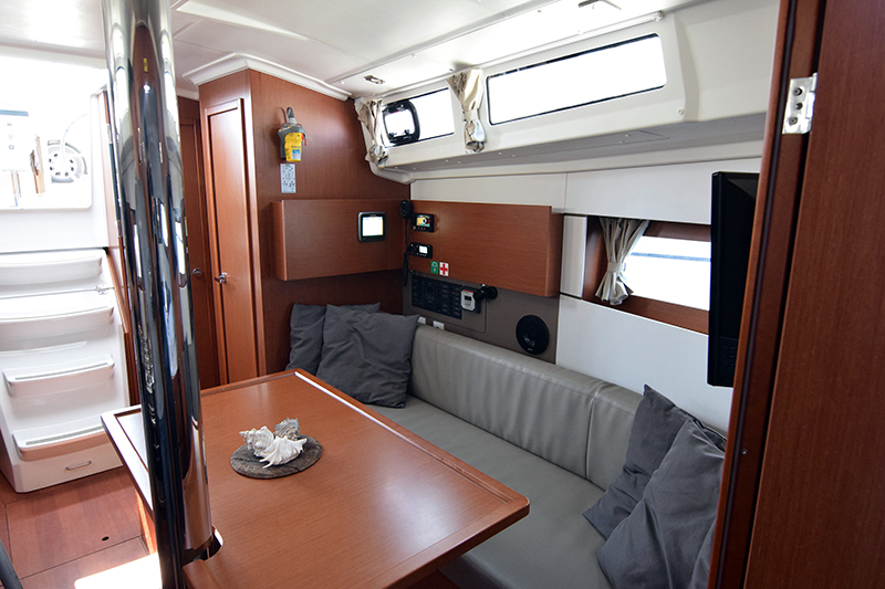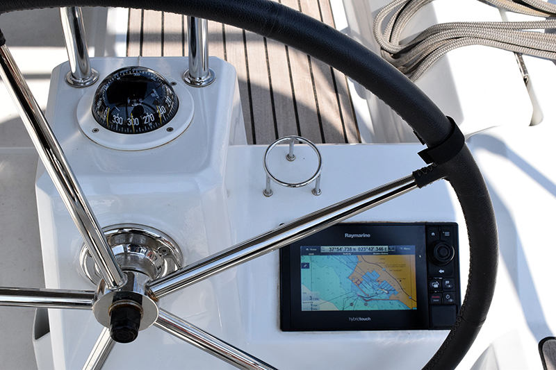 | Navigation | Echolot, GPS mit Kartenplotter im Cockpit, GPS mit Kartenplotter im Salon, Navigationsbesteck, Seekarten, Sumlog, Windmesser |