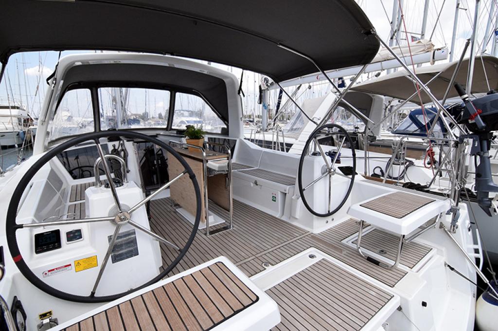 | Outside | Badeleiter, Biminitop, Cockpitdusche, Cockpitpolster, elektr. Ankerwinsch, Solaranlage, Sprayhood |
