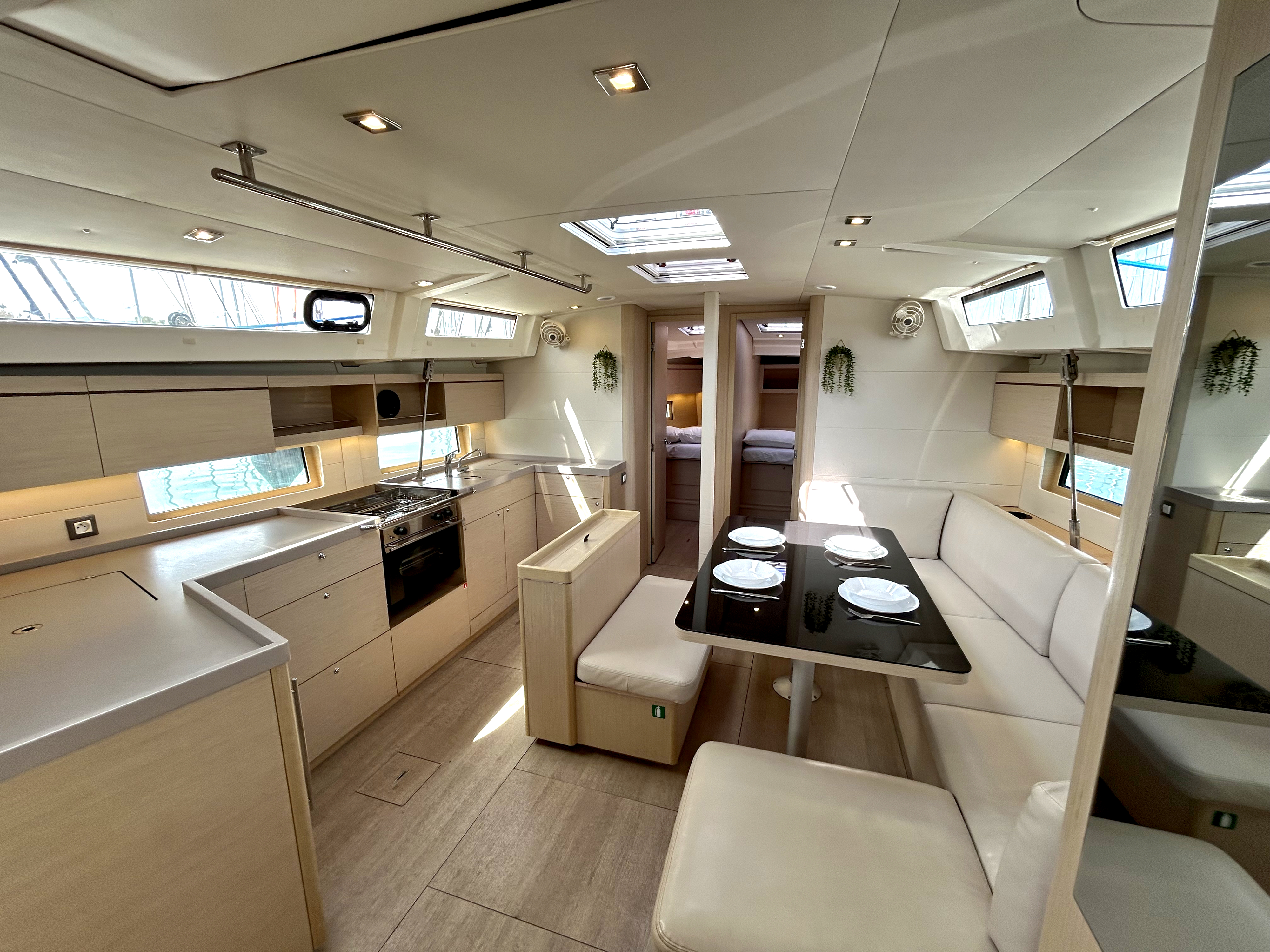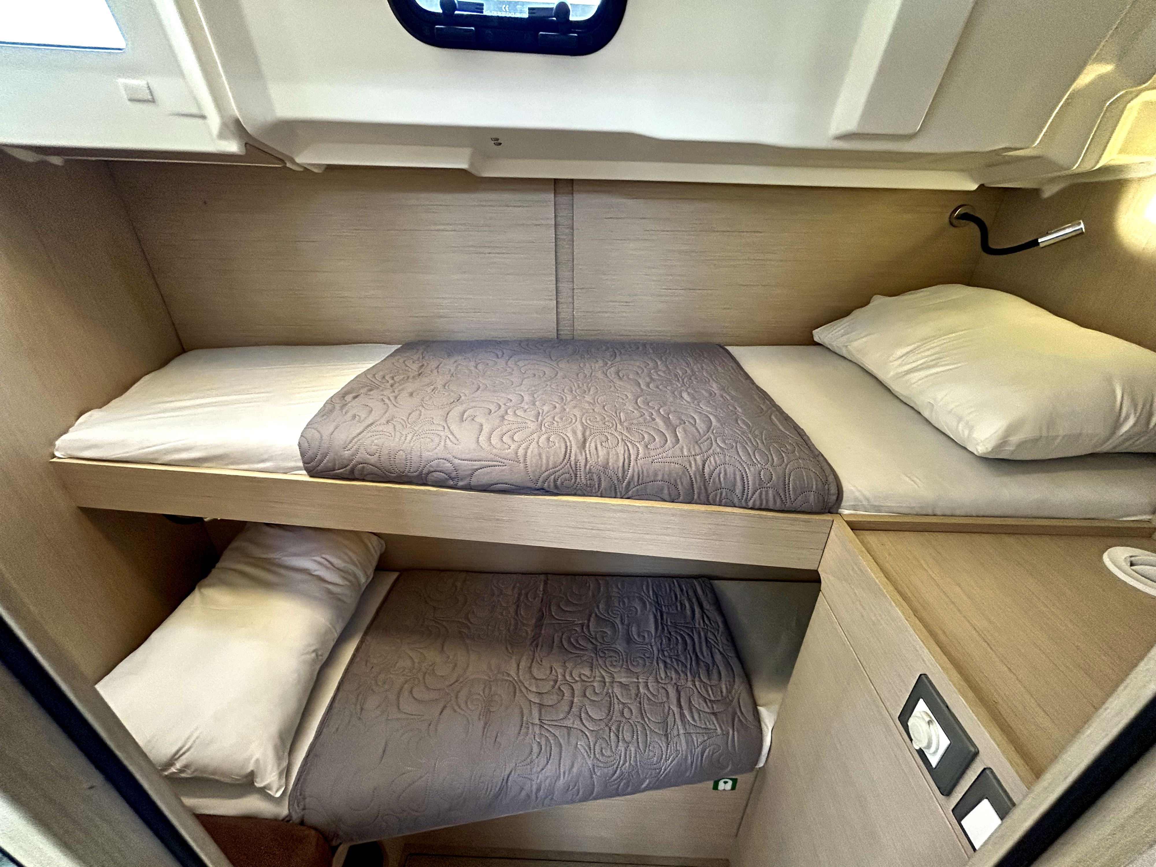 | Inside | Generator, Klimaanlage (ohne Landstrombedarf), Kühlschrank, Pantryausstattung, Radio mit USB, MP3 und Bluetooth, USB Steckdosen in den Kabinen, Ventilator, WC (elektr.) |