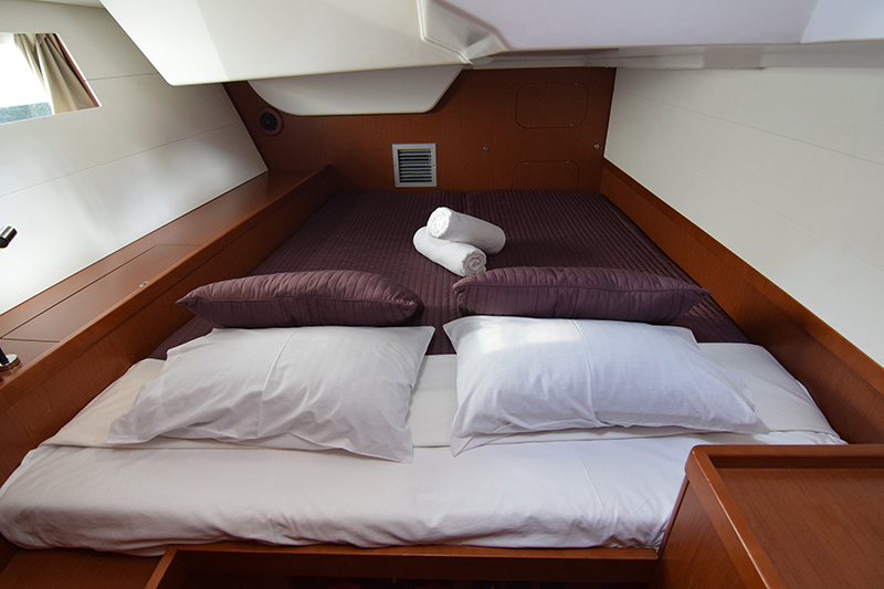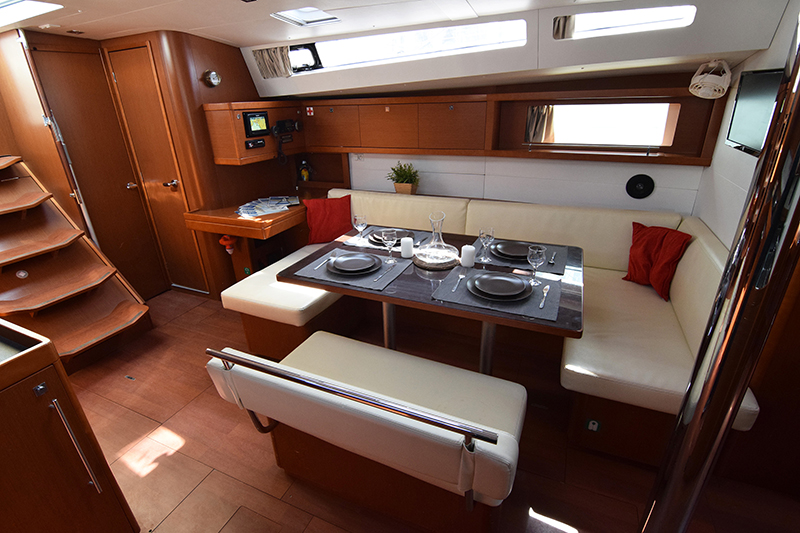 | Navigation | Echolot, GPS mit Kartenplotter im Cockpit, GPS mit Kartenplotter im Salon, Navigationsbesteck, Seekarten, Sumlog, Windmesser |