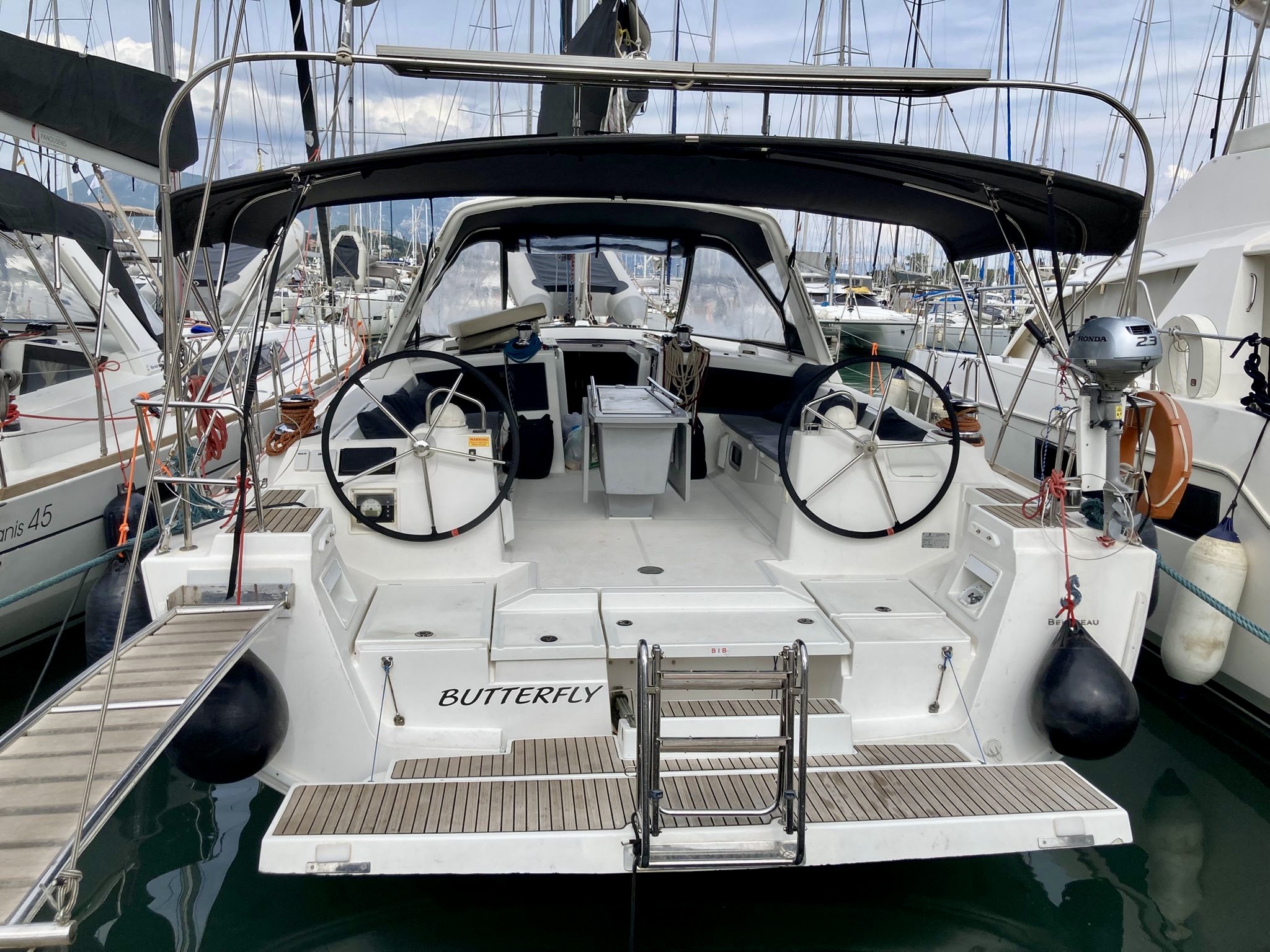 | Outside | Badeleiter, Biminitop, Cockpitdusche, Cockpitlautsprecher, Cockpitpolster, Cockpittisch, elektr. Ankerwinsch, Solaranlage, Sprayhood |