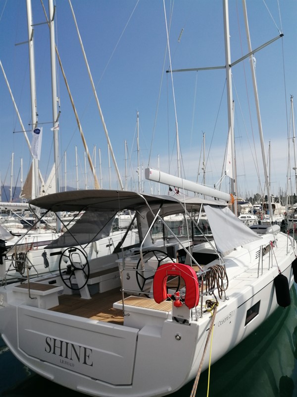 | Outside | 220 V-Landanschluss, Anker mit Kette, Ankerkettenzähler, Aschenbecher, Badeleiter, Badeplattform, Biminitop, Bootshaken, Cockpitdusche, Cockpitpolster, Cockpittisch, Deckbürste, Dieselkanister , elektr. Ankerwinsch, Fender, Festmacherleinen, Kunststoff-Eimer (Pütz), Solaranlage, Sprayhood, Teak im Cockpit, Vorhängeschloss, Wasserschlauch, Winschen |