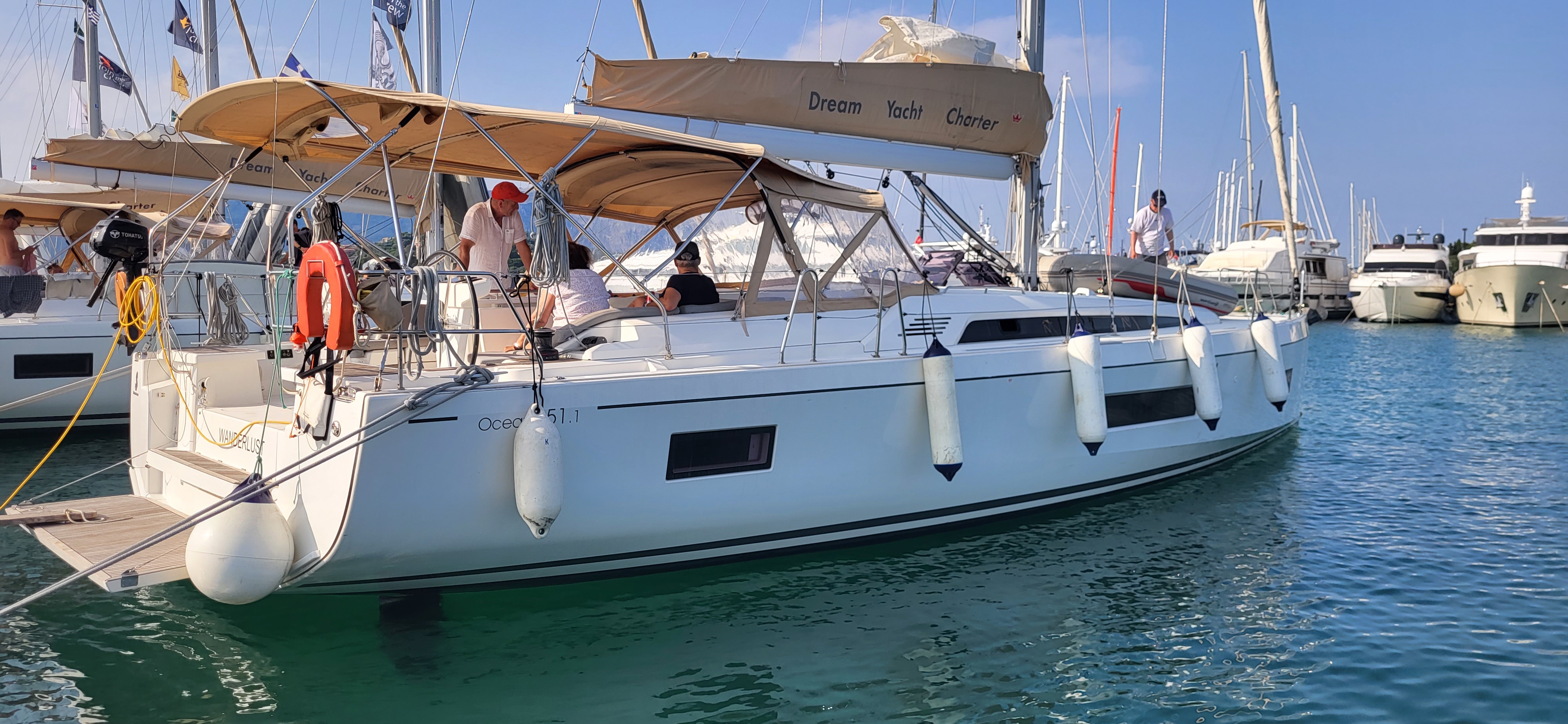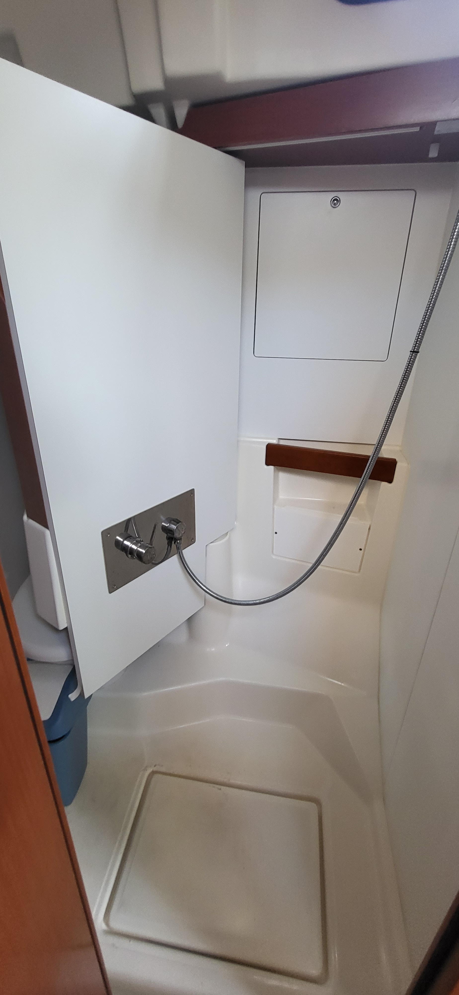 | Outside | Badeleiter, Biminitop, Cockpitdusche, Cockpitlautsprecher, Cockpitpolster, Cockpittisch, elektr. Ankerwinsch, Sprayhood |