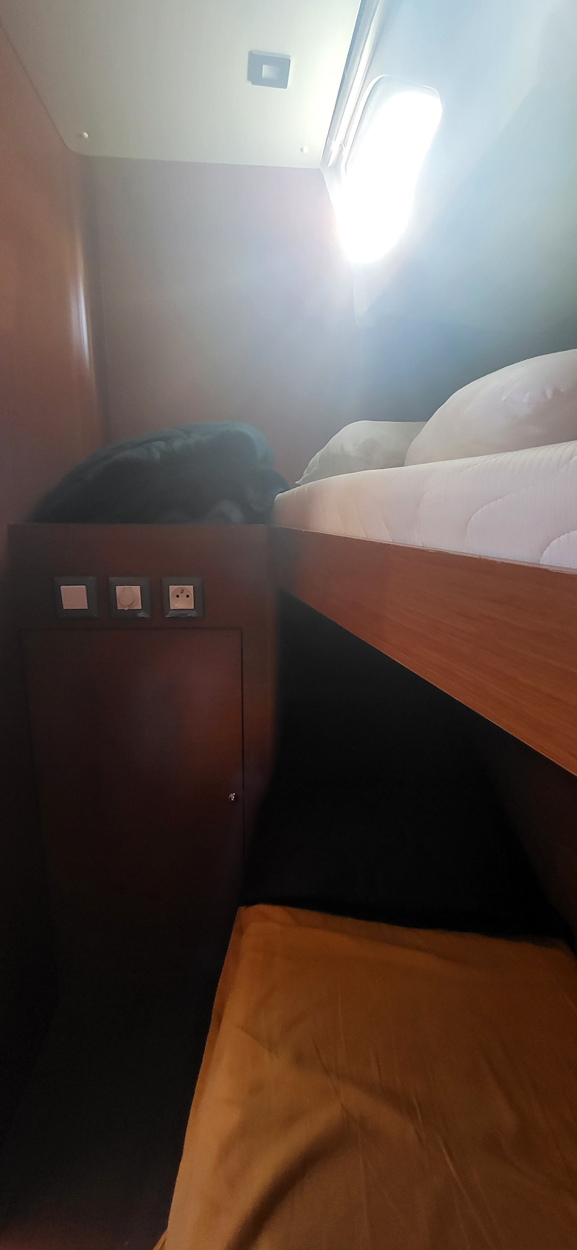 | Inside | 220V Steckdosen, Backofen, Gasherd, Inverter 12V/220V, Kühlschrank, Radio, Salontisch absenkbar, Ventilatoren in Kabinen, WC (elektr.) |