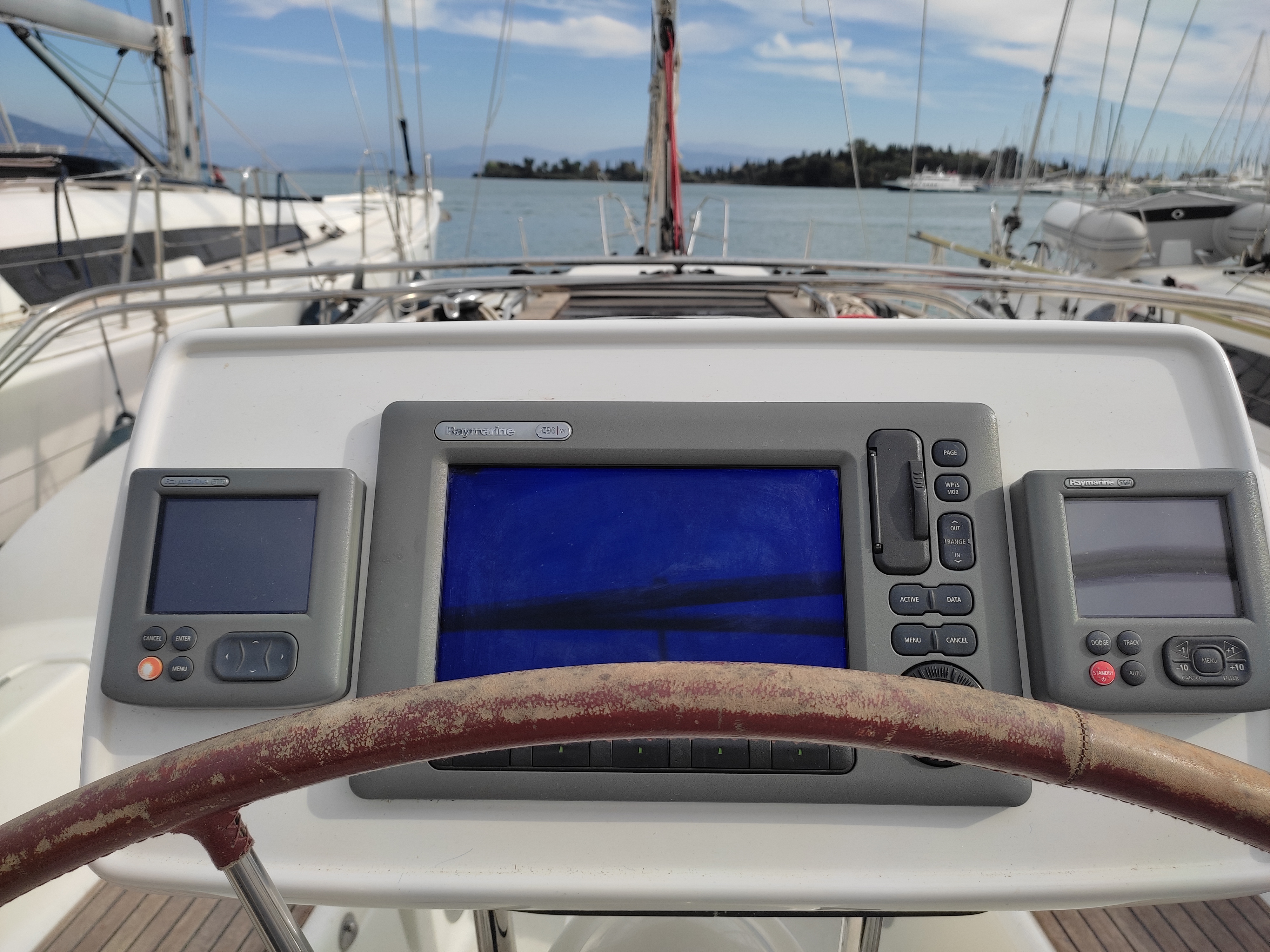 | Navigation | Barometer, Echolot, elektr. Seekarten, Fernglas, GPS mit Kartenplotter im Cockpit, Hafenhandbücher, Handpeilkompass, Kompass, Sumlog, Windmesser |