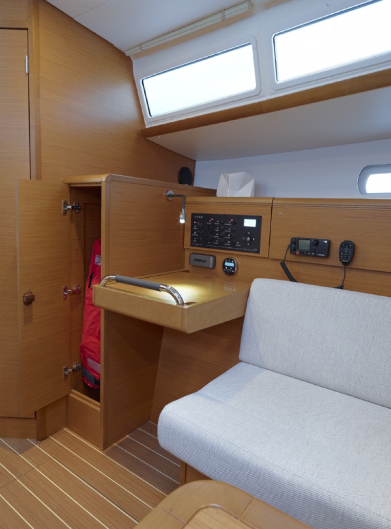 | Safety | Autopilot, Bootsmannstuhl, Bordapotheke, Bordwerkzeug, Bugstrahlruder, elektr. Bilgepumpe, Epirb, Feuerlöscher, GMDSS, Leuchtboje, Lifebelts, Navigationslichter, Nebelhorn, Notpinne, Notsignale, Radarreflektor, Rettungsinsel, Rettungskragen, Taschenlampe, UKW-Funk |