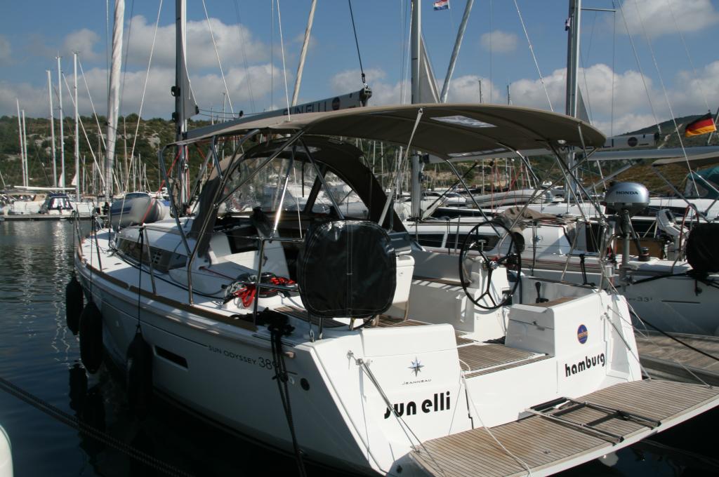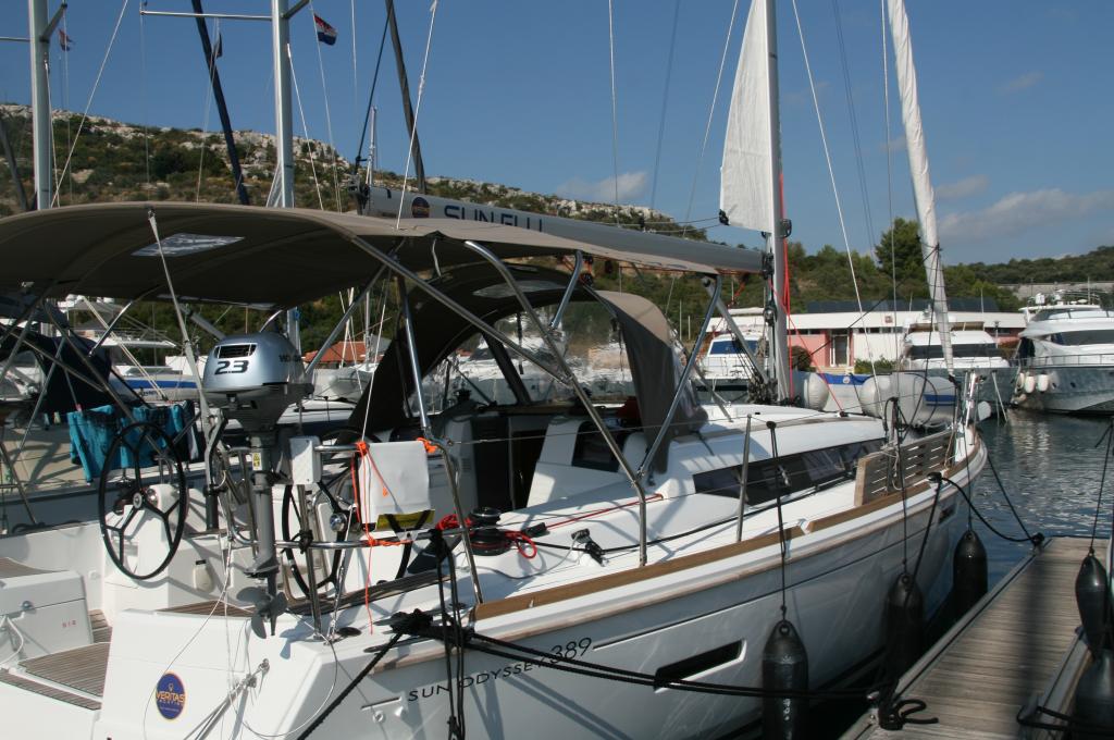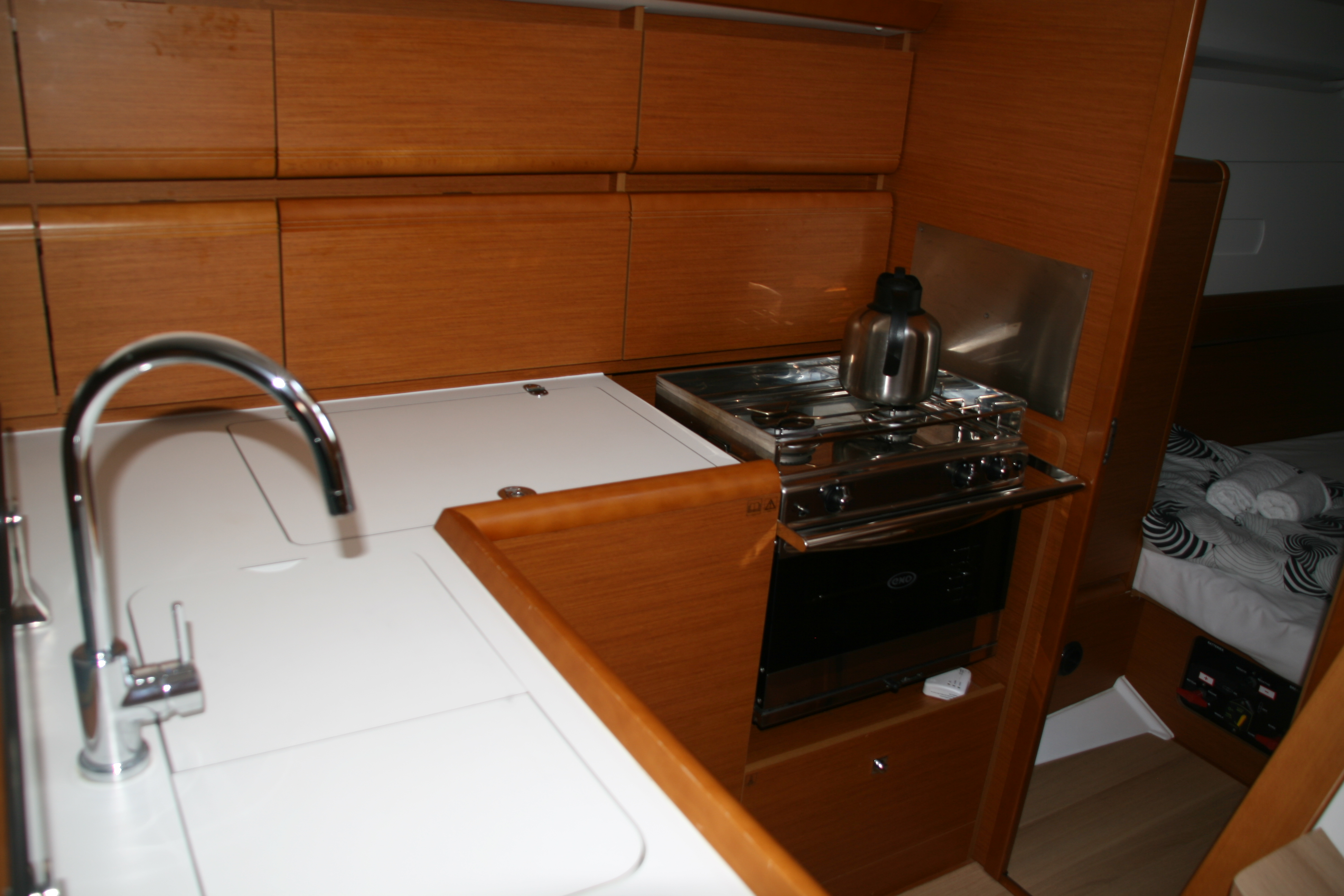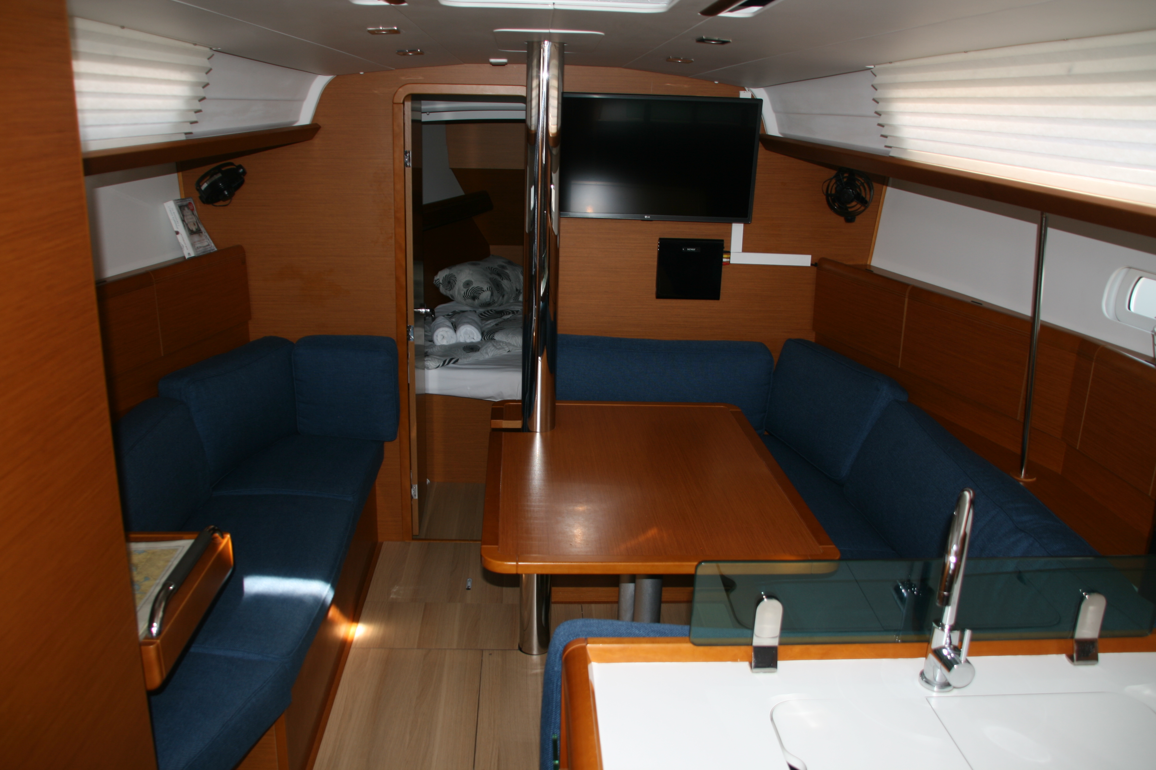 | Outside | 12 V-Anschluss, Anker mit Kette, Badeleiter, Badeplattform, Biminitop, Cockpitdusche, Cockpitlautsprecher, Cockpittisch, elektr. Ankerwinsch, Fender, Festmacherleinen, Gangway, Sprayhood, Teak im Cockpit, Teakdeck, Wasserschlauch, Windex |