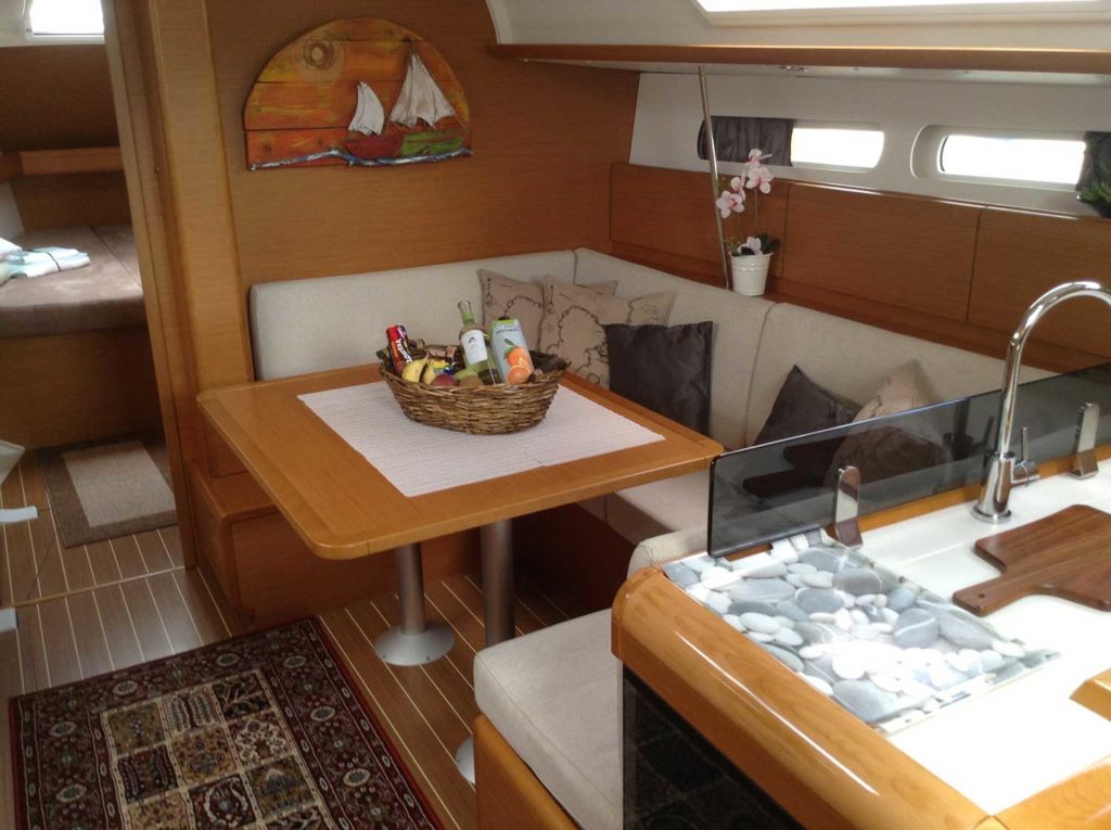 | Outside | Biminitop, Cockpitdusche, Cockpittisch, hydraul. Gangway, Sprayhood, Teakdeck |