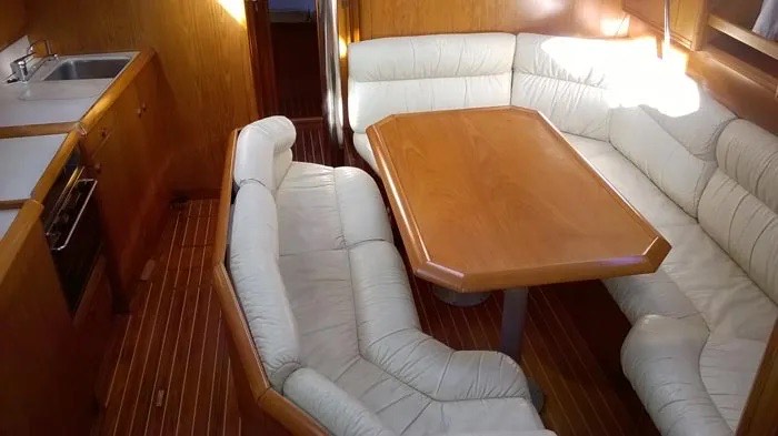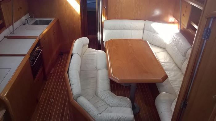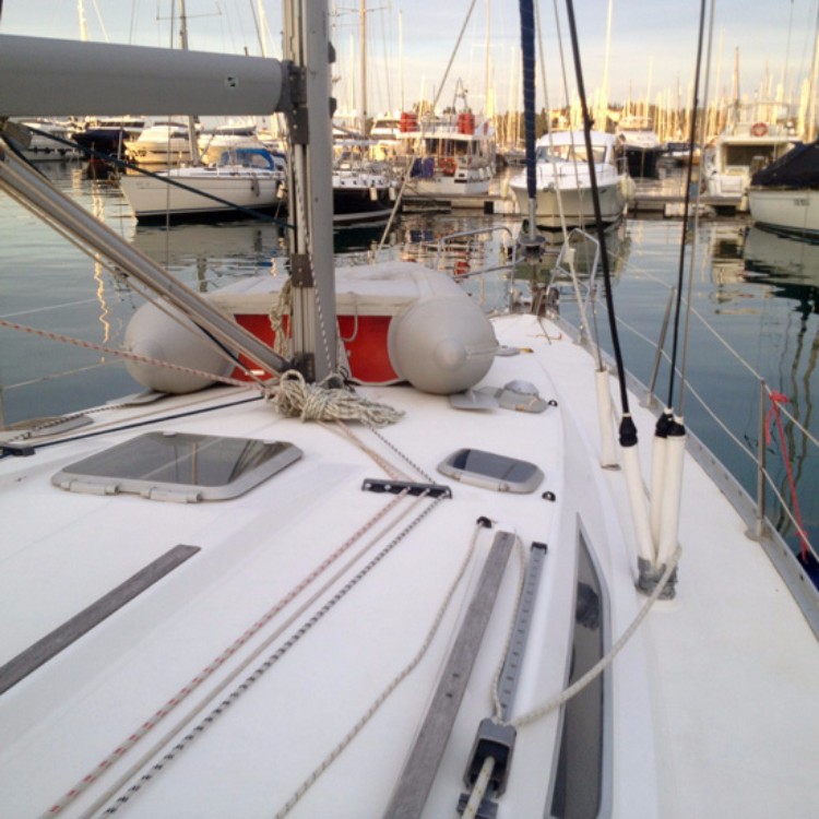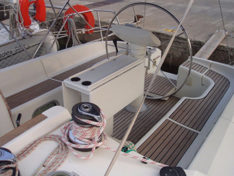 | Outside | 220 V-Landanschluss, Anker mit Kette, Anker mit Seil, Badeleiter, Benzinkanister, Biminitop, Bootshaken, Cockpitdusche, Cockpitlautsprecher, Cockpitleuchte, Cockpitpolster, Cockpittisch, Deckbürste, Dieselkanister , elektr. Ankerwinsch, Fender, Festmacherleinen, Gangway, Kunststoff-Eimer (Pütz), Schnorchelausrüstung, Solaranlage, Sprayhood, Wantenschneider, Wasserkanister , Wasserschlauch, Windex, Winschen |