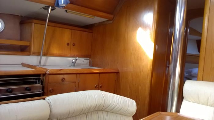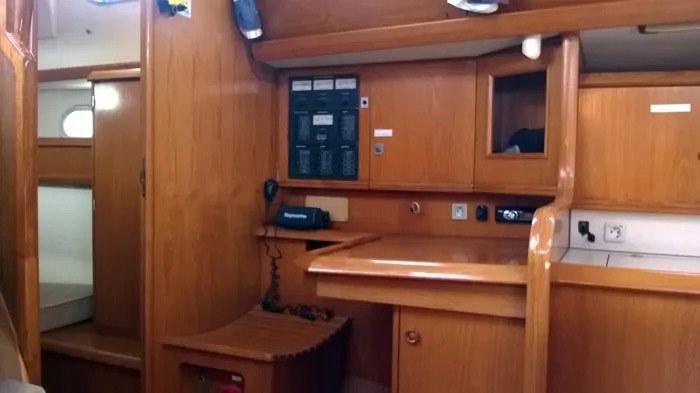 | Safety | Autopilot, Bootsmannstuhl, Bordapotheke, Bordwerkzeug, elektr. Bilgepumpe, Epirb, Feststoffschwimmwesten, Feuerlöscher, Handbilgepumpe, Leuchtboje, Lifebelts, Navigationslichter, Nebelhorn, Notpinne, Notsignale, Radarreflektor, Reparaturset für Beiboot, Rettungsinsel, Rettungskragen, Sicherheitsgurt, Suchscheinwerfer, Taschenlampe, UKW-Funk, UKW-Funk m. DSC, Zweitanker |
