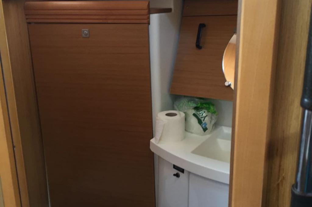 Inside Backofen, Fäkalientank, Gasherd, Kühlschrank, Ladegerät, Landstromkabel, LCD Fernseher, Pantryausstattung, Radio mit CD, Salontisch absenkbar, TV + DVD, USB Steckdose, Ventilatoren in Salon und Kabinen, WC