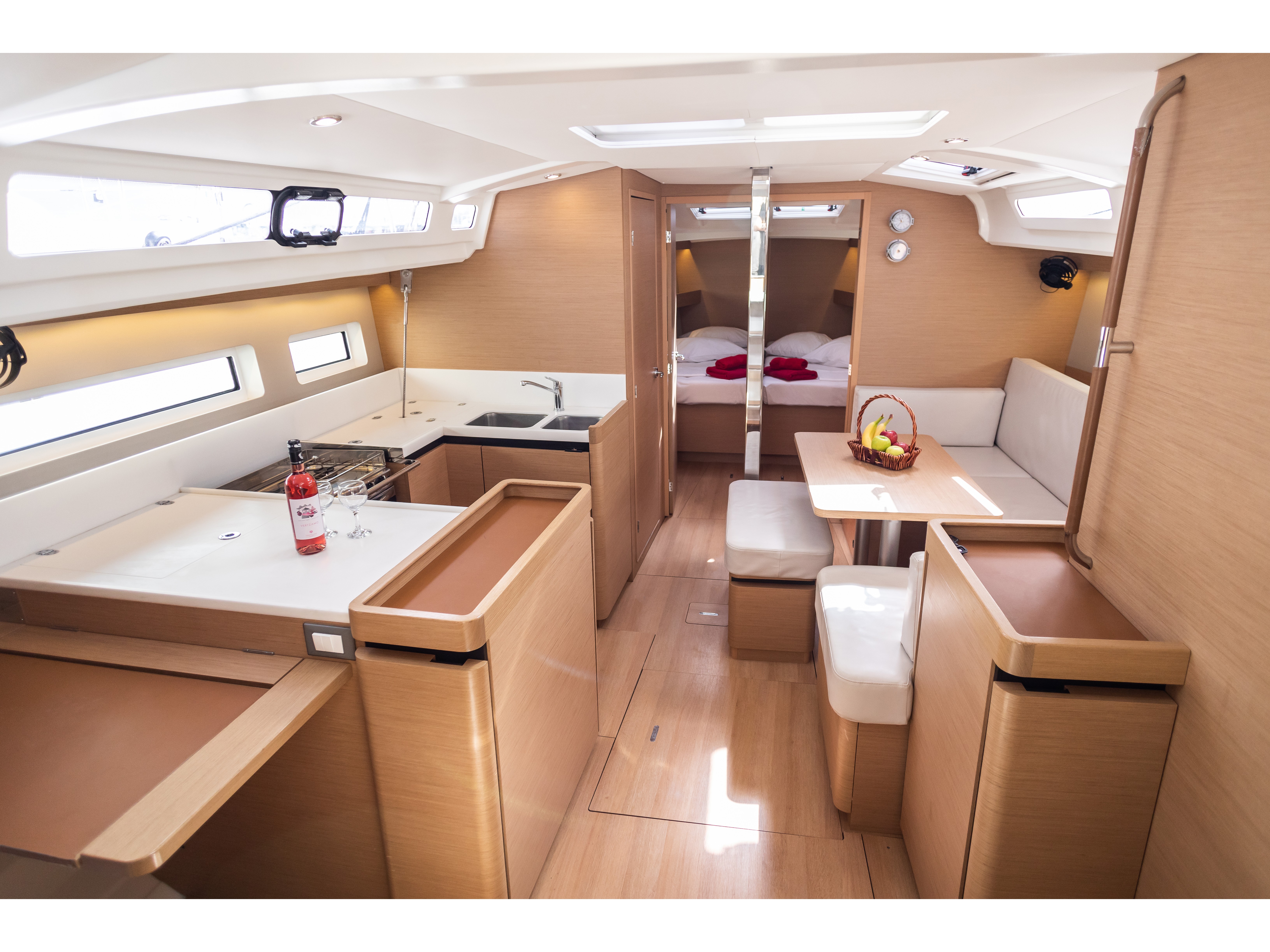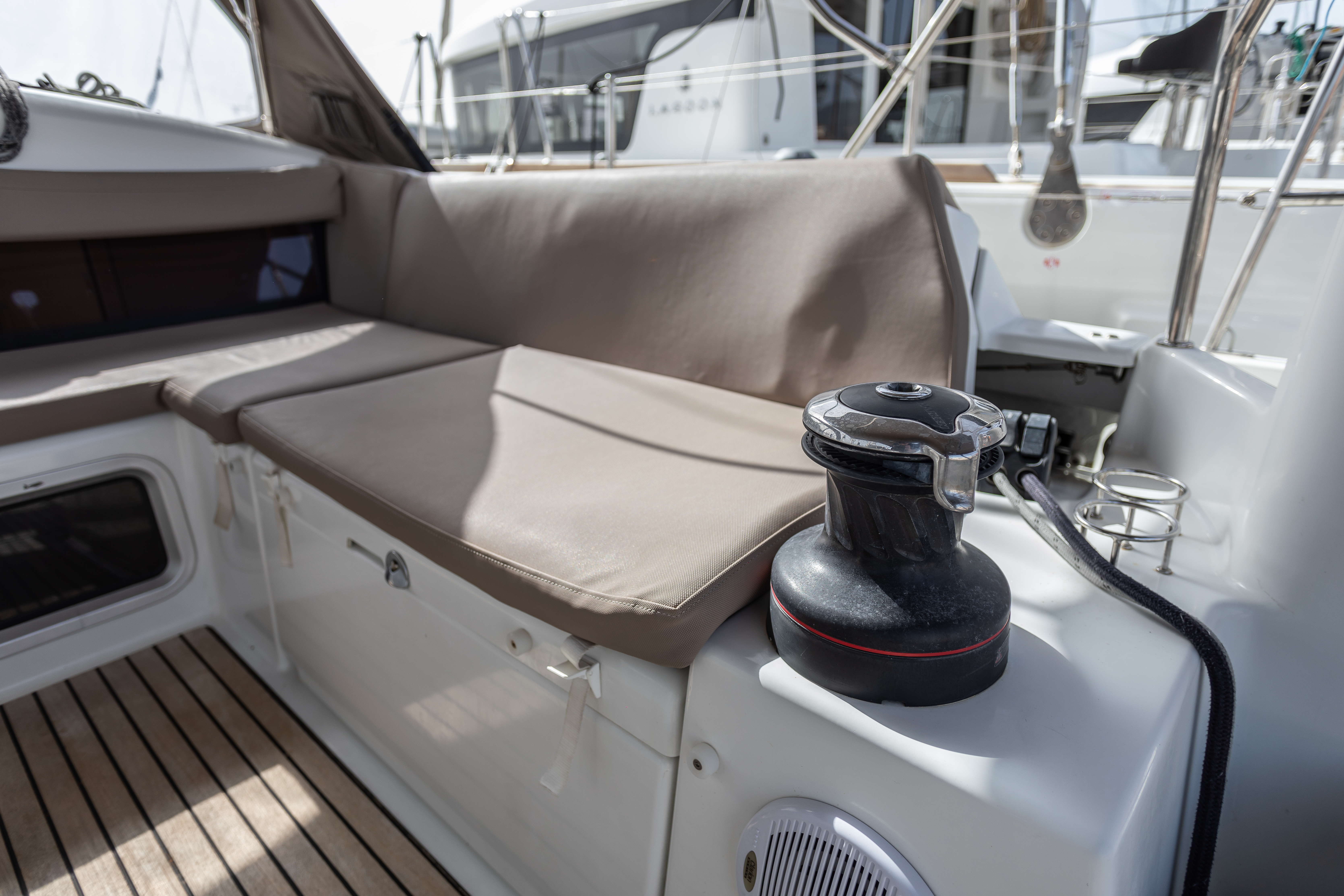 | Outside | Biminitop, Cockpitdusche, Cockpitlautsprecher, Cockpittisch, elektr. Ankerwinsch, Schnorchelausrüstung, Sprayhood, Teak im Cockpit |