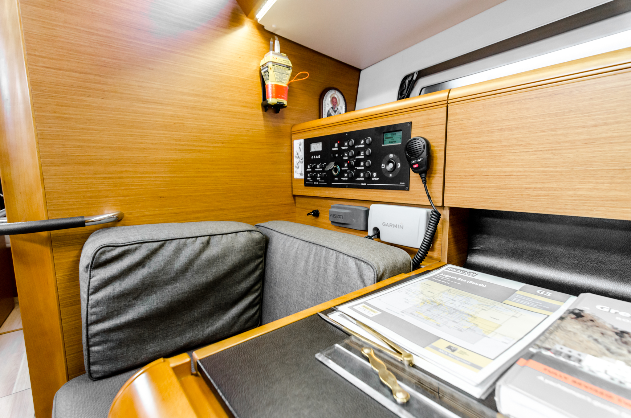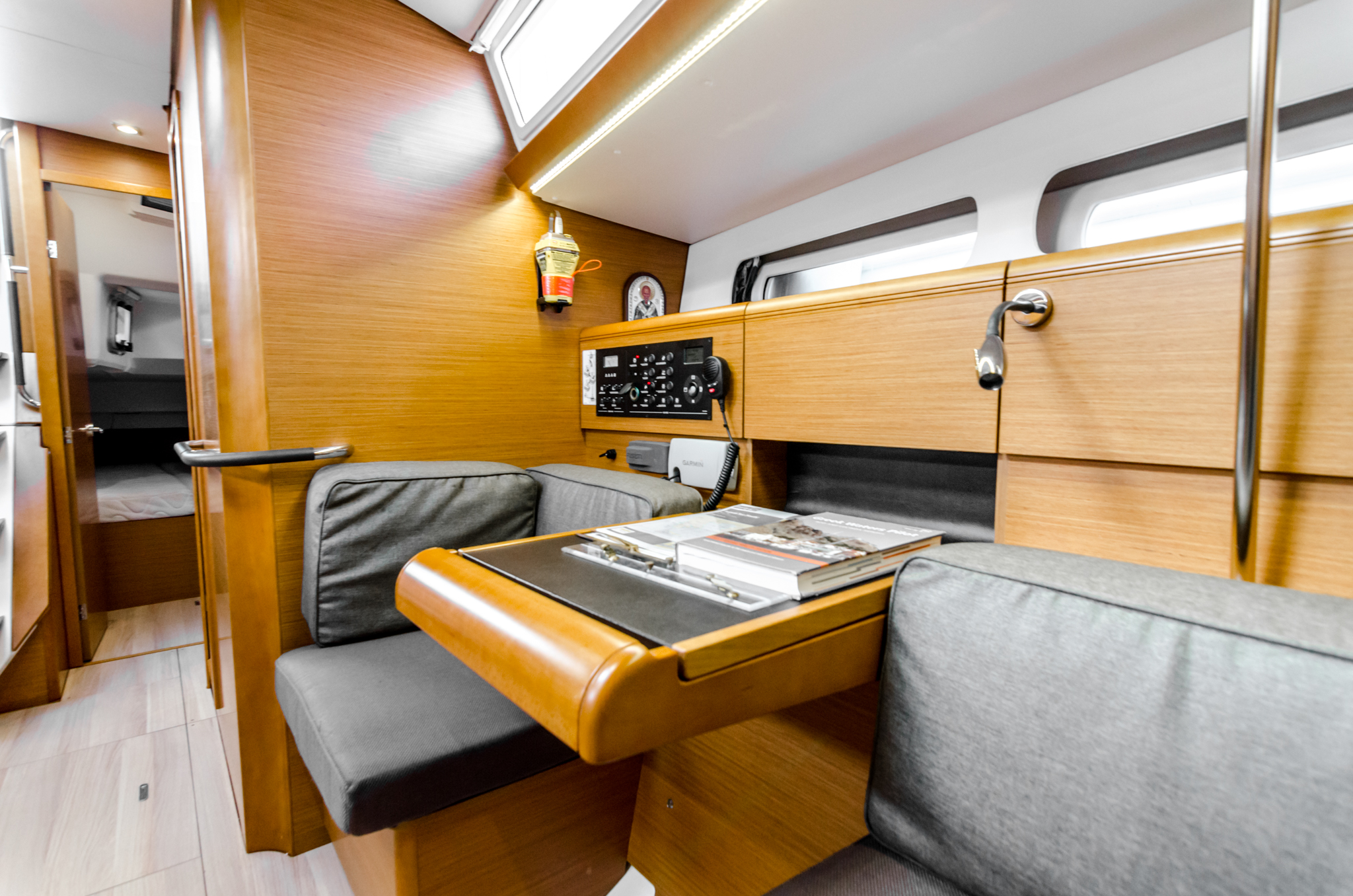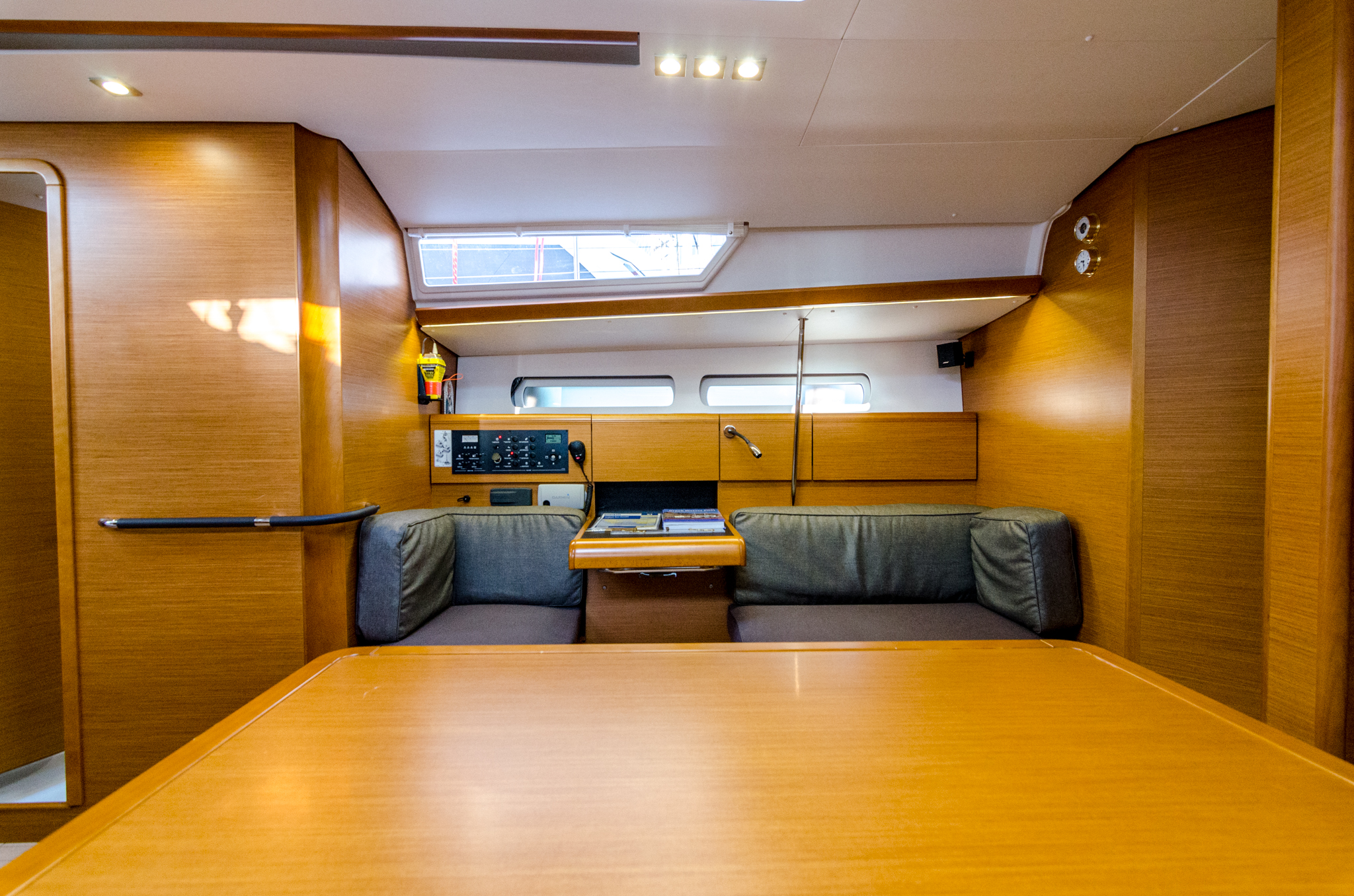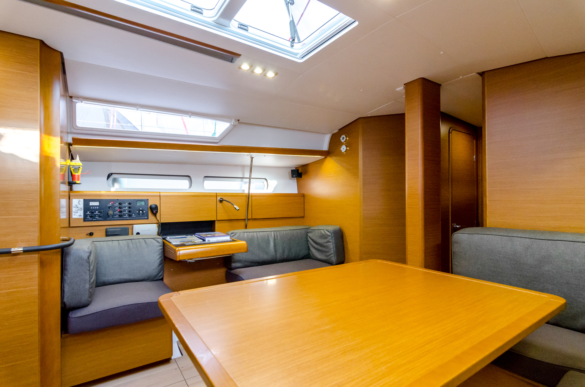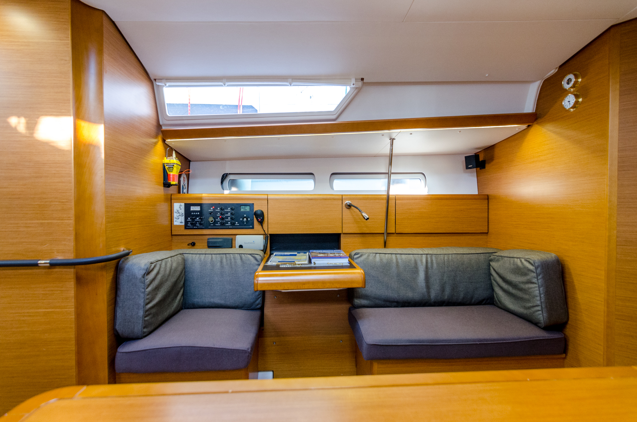 | Navigation | Echolot, GPS mit Kartenplotter im Cockpit, Seekarten, Windmesser |