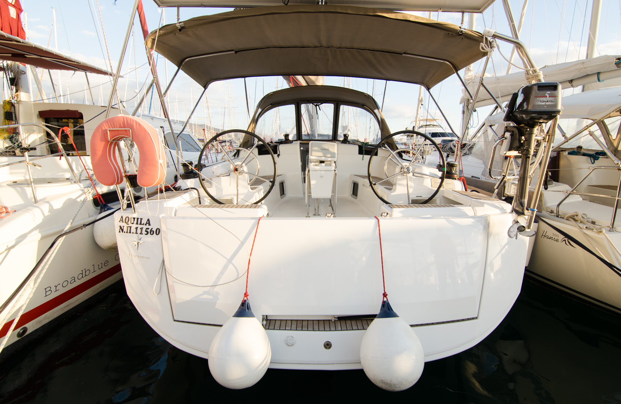 | Outside | Außendusche, Biminitop, Cockpitlautsprecher, Cockpittisch, elektr. Ankerwinsch, Gangway, Solaranlage, Sprayhood |