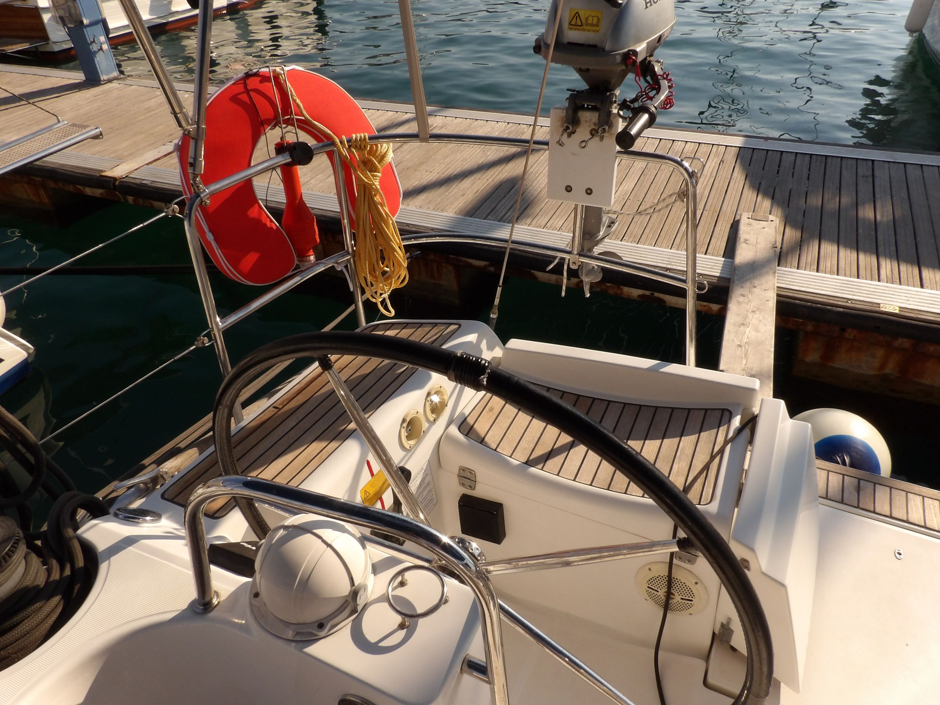 | Safety | Autopilot, Bootsmannstuhl, Bordapotheke, Bordwerkzeug, Bugstrahlruder, elektr. Bilgepumpe, Epirb, Feststoffschwimmwesten, Flaggen, GMDSS, Leuchtboje, Navigationslichter, Notpinne, Notsignale, Rettungsinsel, Rettungskragen, Sicherheitsgurt, Taschenlampe, UKW-Funk |