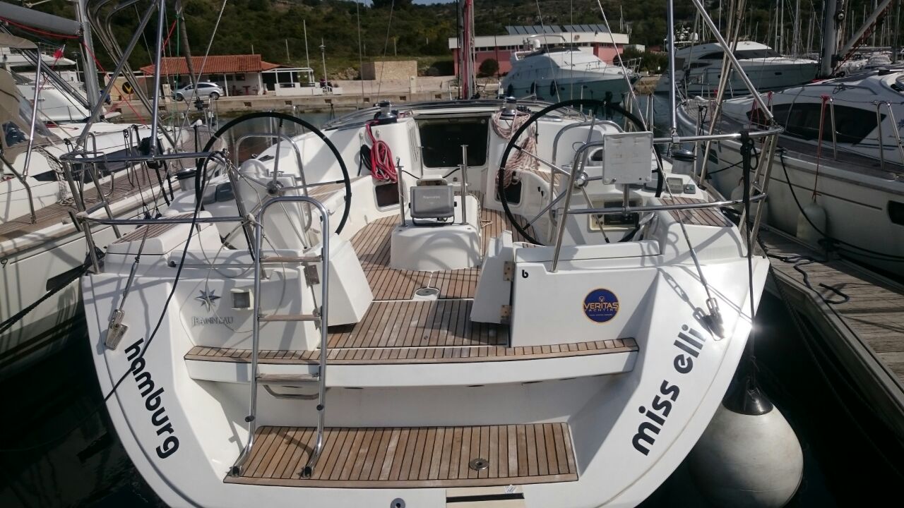 | Safety | AIS Empfänger, Autopilot, Bootsmannstuhl, Bordapotheke, Bordwerkzeug, Bugstrahlruder, elektr. Bilgepumpe, Epirb, Feststoffschwimmwesten, Feuerlöscher, Flaggen, GMDSS, Leuchtboje, Lifebelts, Navigationslichter, Nebelhorn, Notpinne, Notsignale, Radarreflektor, Rettungsinsel, Rettungskragen, Sicherheitsgurt, Taschenlampe, UKW-Funk |