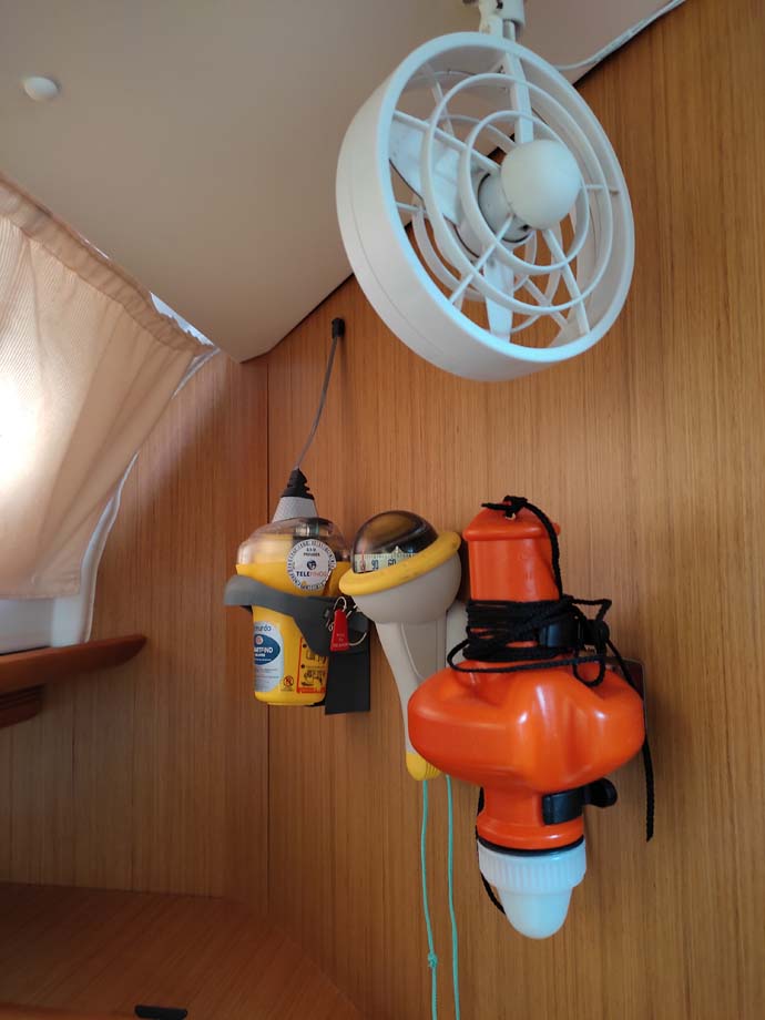 | Navigation | Barometer, Echolot, elektr. Seekarten, Fernglas, GPS mit Kartenplotter im Cockpit, Hafenhandbücher, Handpeilkompass, Kompass, Seekarten, Sumlog, Windmesser |