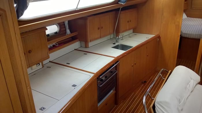 220 V-Landanschluss, Anker mit Kette, Anker mit Seil, Badeleiter, Benzinkanister, Biminitop, Bootshaken, Cockpitdusche, Cockpitlautsprecher, Cockpitleuchte, Cockpitpolster, Cockpittisch, Deckbürste, Dieselkanister , elektr. Ankerwinsch, Fender, Festmacherleinen, Gangway, Kunststoff-Eimer (Pütz), Schnorchelausrüstung, Solaranlage, Sprayhood, Wantenschneider, Wasserkanister , Wasserschlauch, Windex, Winschen |