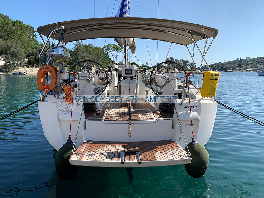 | Outside | 220 V-Landanschluss, Anker mit Kette, Ankerkettenzähler, Badeleiter, Badeplattform, Biminitop, Bootshaken, Cockpitdusche, Cockpitlautsprecher, Cockpitleuchte, Cockpitpolster, Deckbürste, Dieselkanister , elektr. Ankerwinsch, Fender, Fernsteuerung für elektr. Ankerwinsch, Festmacherleinen, Gangway, Kunststoff-Eimer (Pütz), Schnorchelausrüstung, Solaranlage, Sprayhood, Wantenschneider, Wasserkanister , Wasserschlauch, Windex, Winschen |