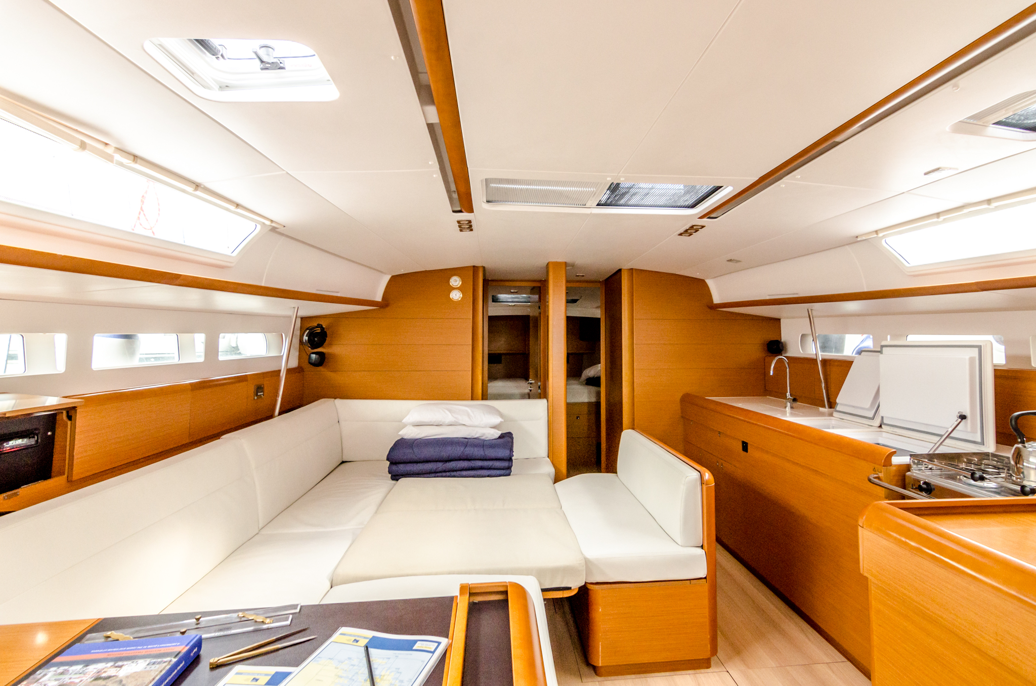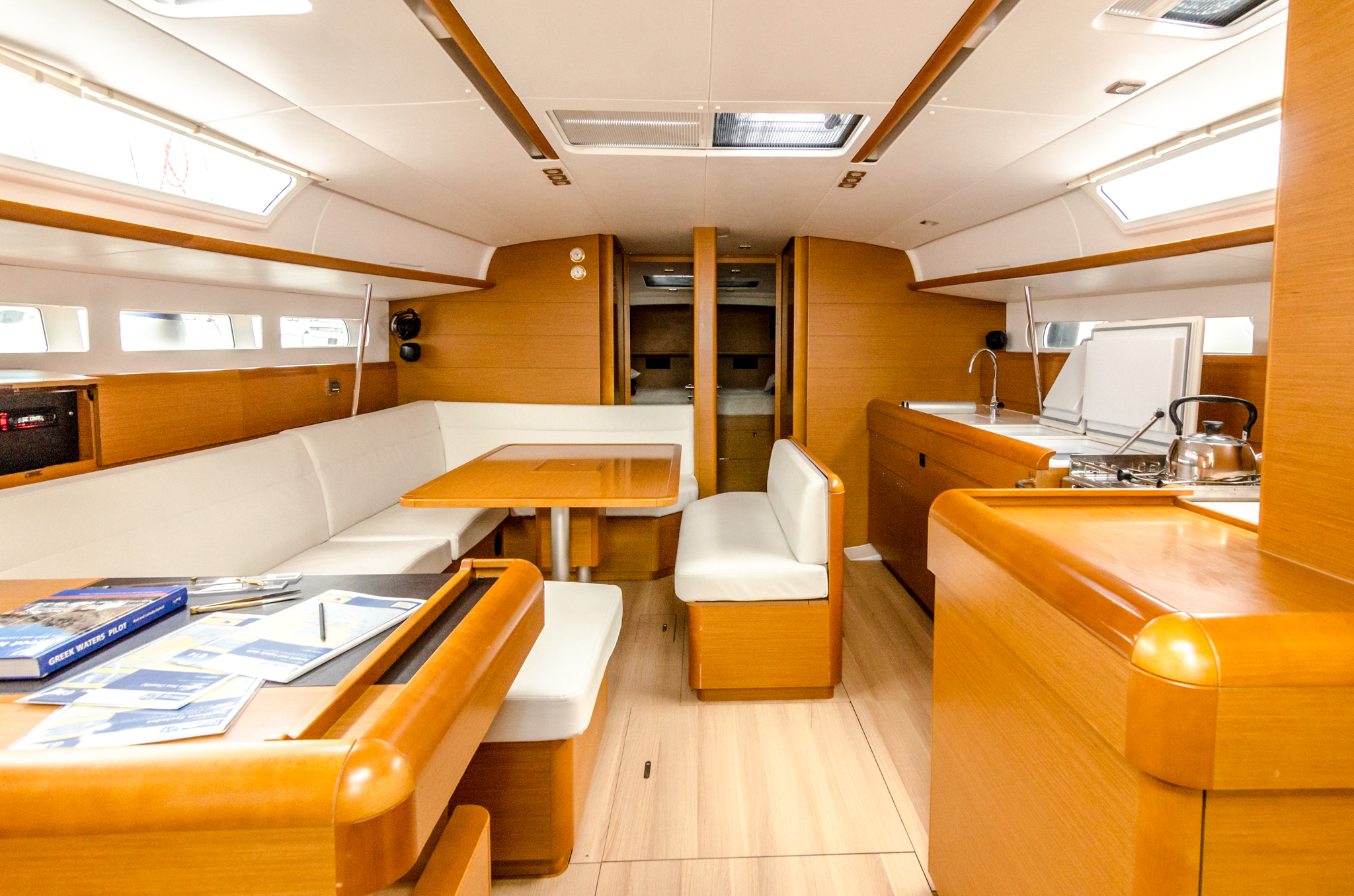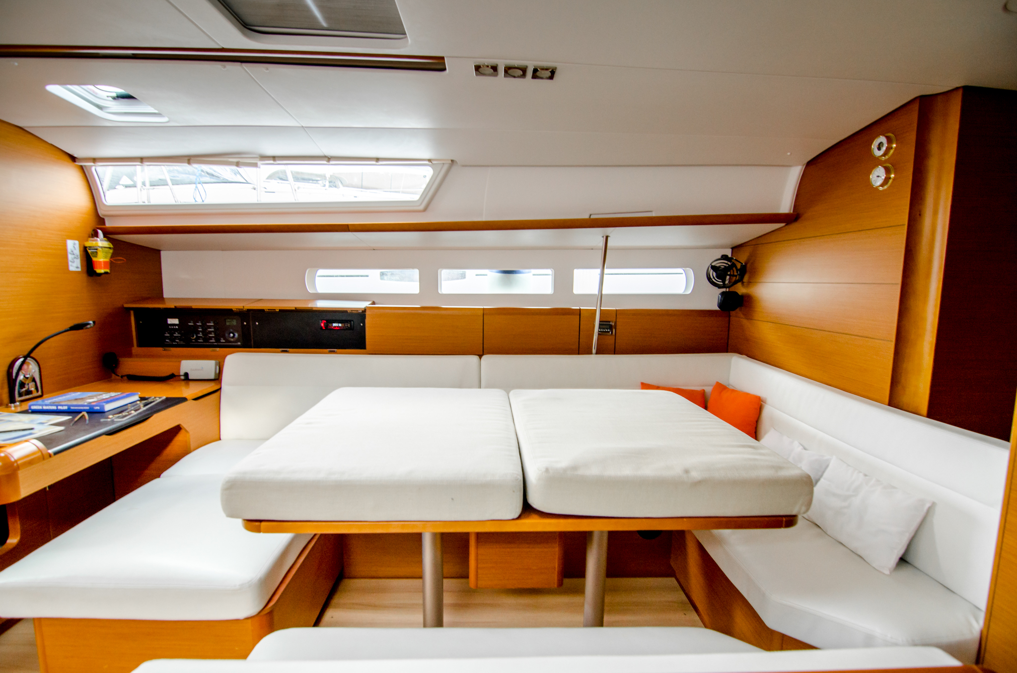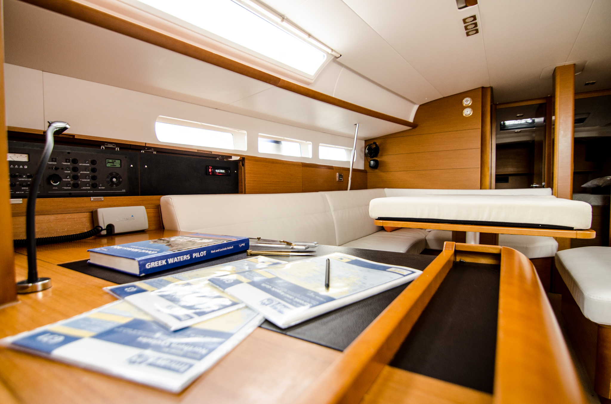 | Navigation | Echolot, GPS mit Kartenplotter im Cockpit, Seekarten, Windmesser |