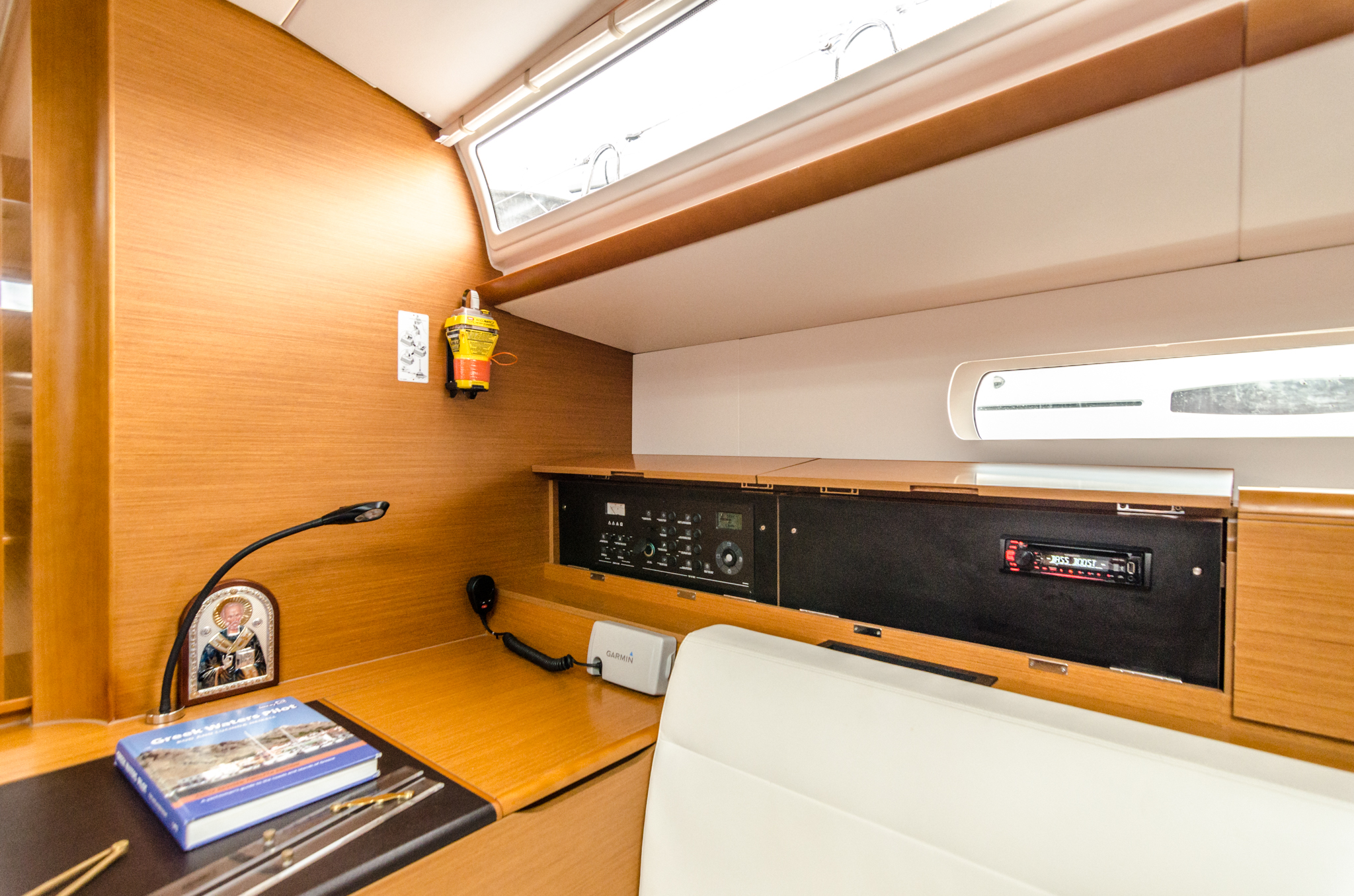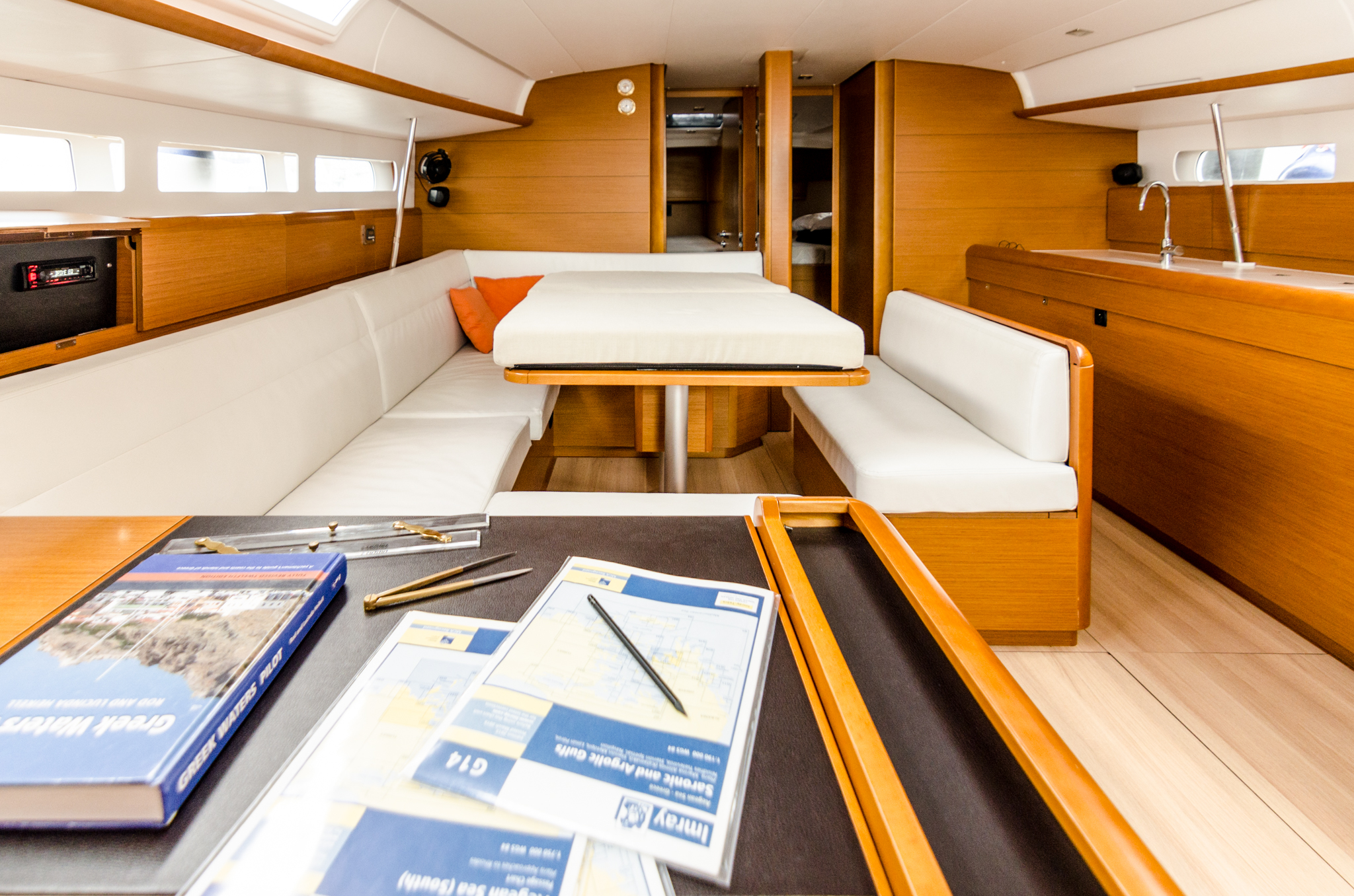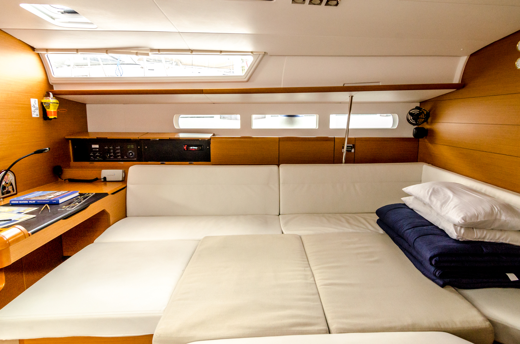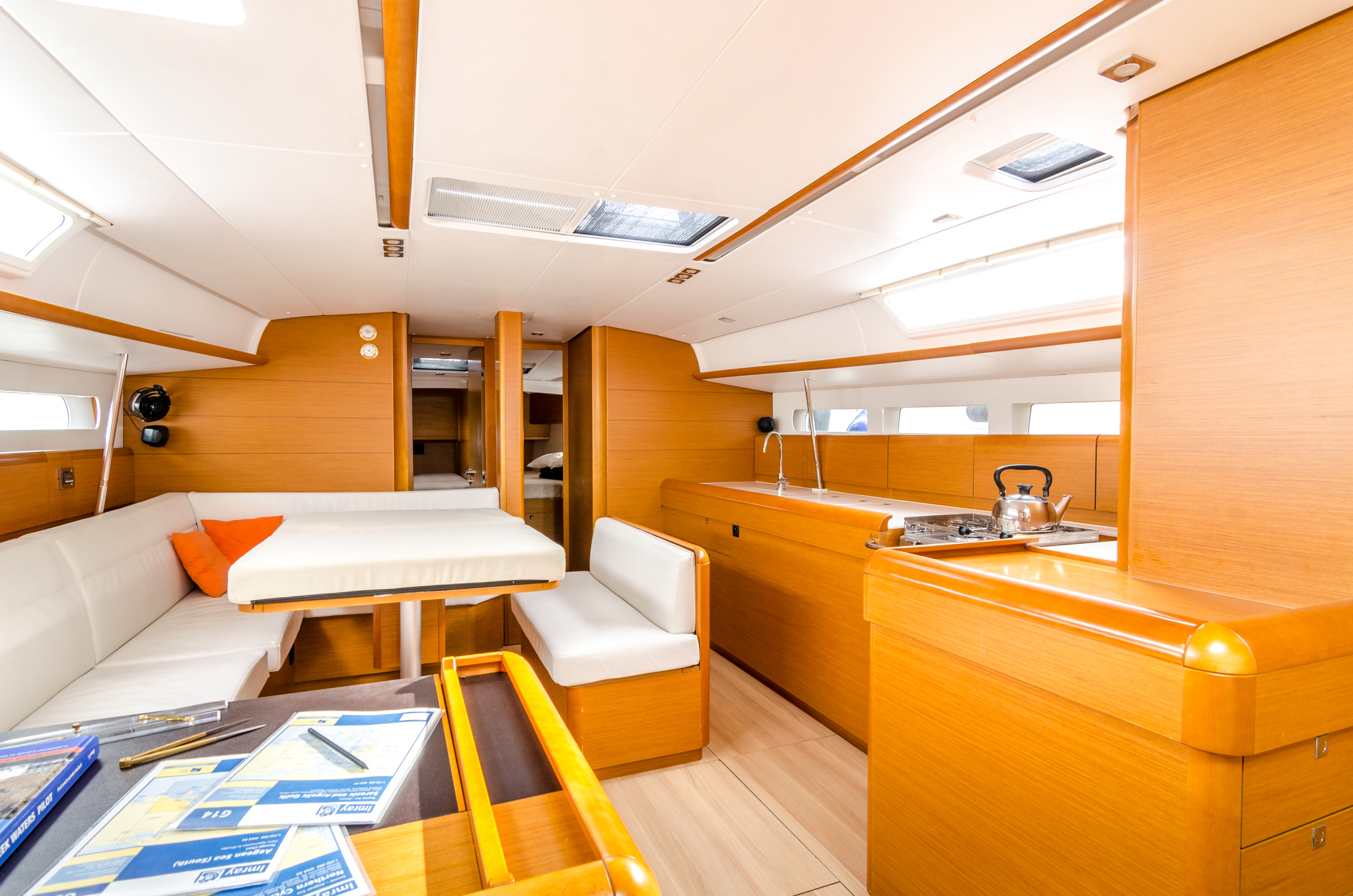 | Navigation | Echolot, GPS mit Kartenplotter im Cockpit, Seekarten, Windmesser |