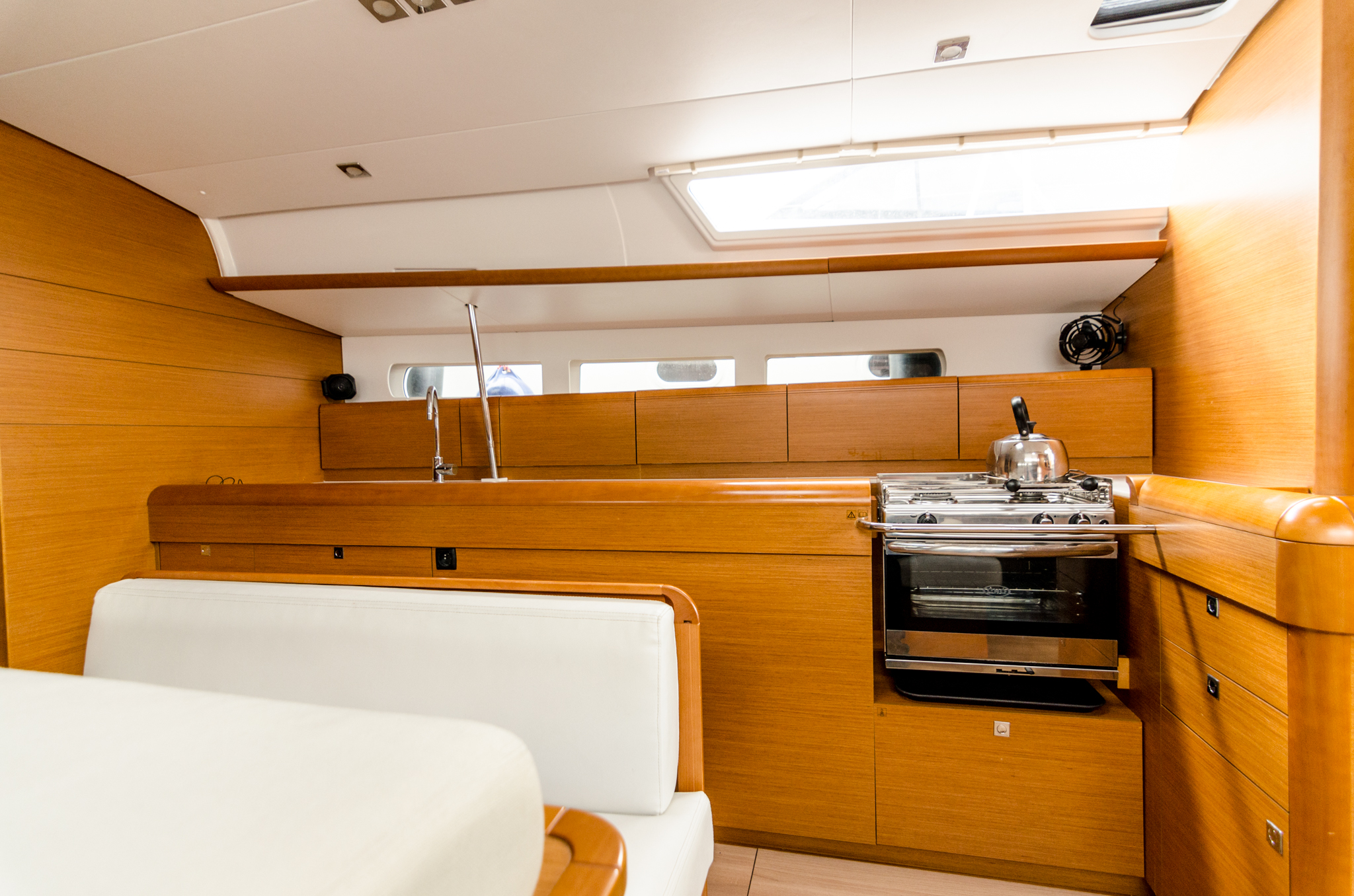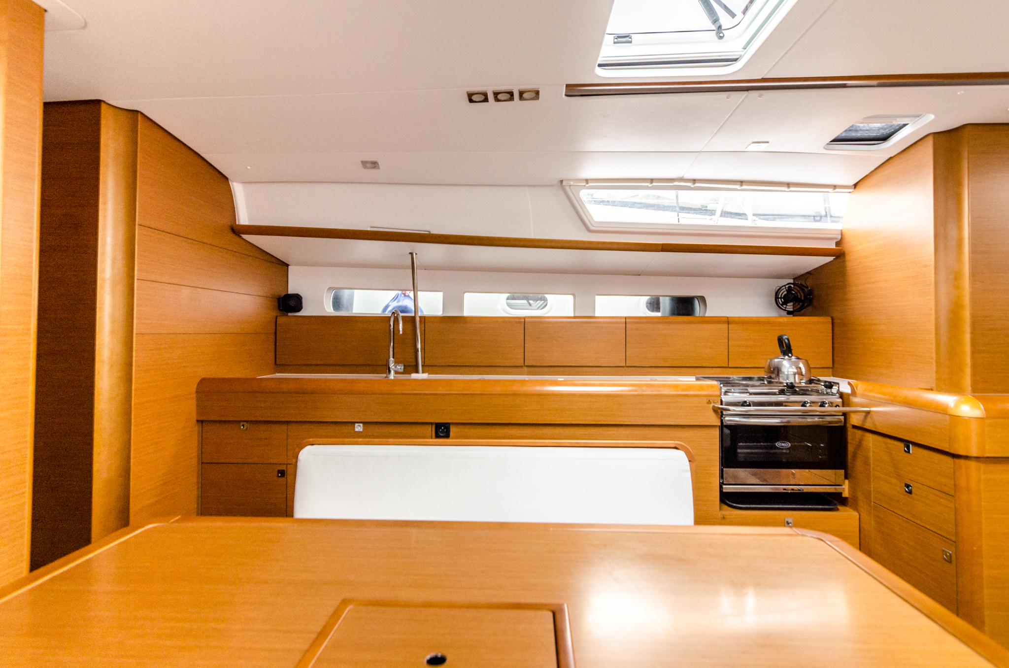 | Outside | Außendusche, Biminitop, Cockpitlautsprecher, Cockpittisch, elektr. Ankerwinsch, Gangway, Solaranlage, Sprayhood |