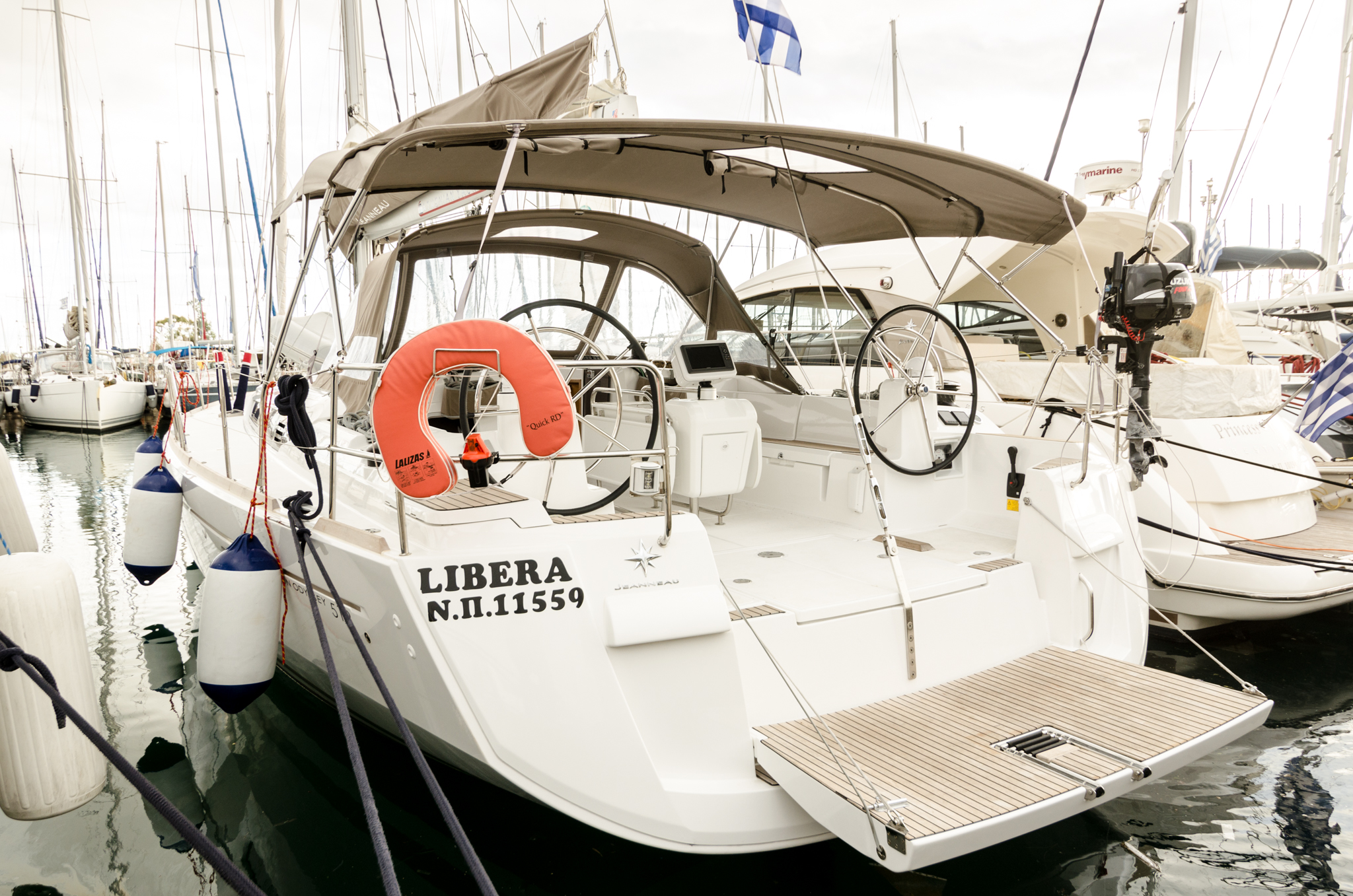 | Safety | Autopilot, Bugstrahlruder, Epirb, Feststoffschwimmwesten, Rettungsinsel, Sicherheitsausrüstung, UKW-Funk |