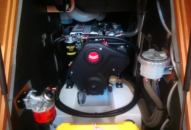 | Inside | Fäkalientank, Gefrierschrank, Generator, Kaffeemaschine, Klimaanlage (ohne Landstrombedarf), Ladegerät, Landstromkabel, Pantryausstattung, Salontisch absenkbar, Ventilatoren in Salon und Kabinen, Watermaker, WC (elektr.) |