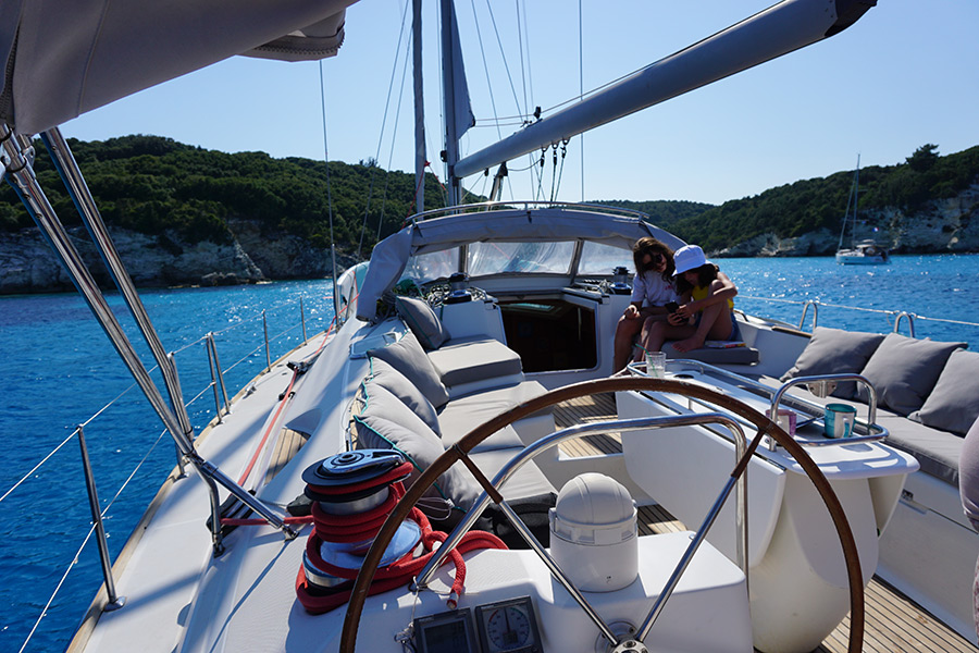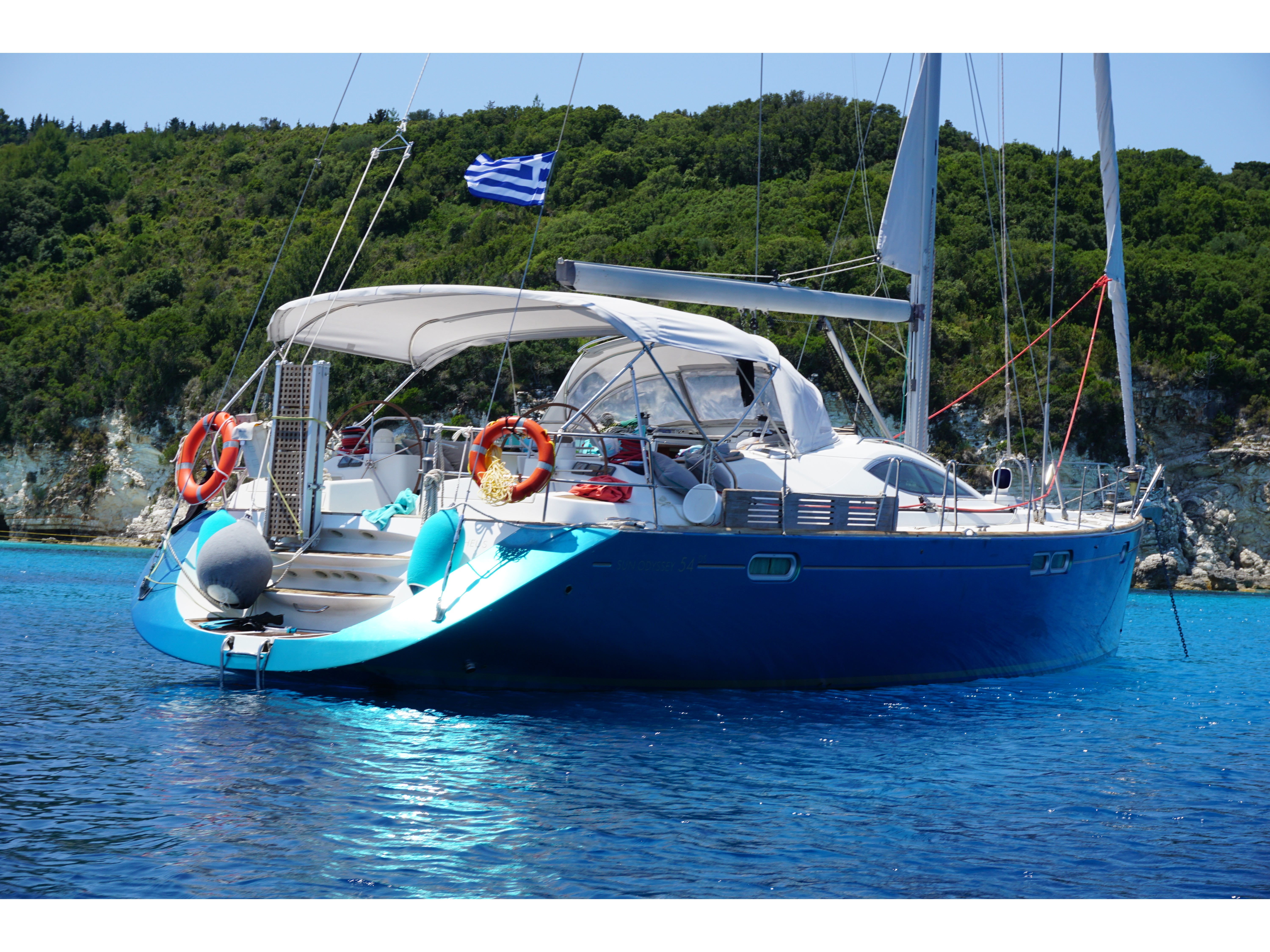 | Outside | Anker mit Kette, Badeplattform, Bootshaken, Fender, Festmacherleinen, Grill, Heckdusche, Liegestühle, Schnorchelausrüstung, Unterwasserbeleuchtung, Wasserschlauch, Windex, Winschen |