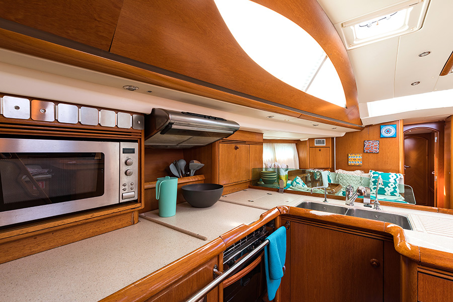 | Inside | Generator, Inverter 12V/220V, Klimaanlage (ohne Landstrombedarf), Luftpumpe für Beiboot, Pantryausstattung, Radio mit CD und MP3, Warmwasser, WC (elektr.) |