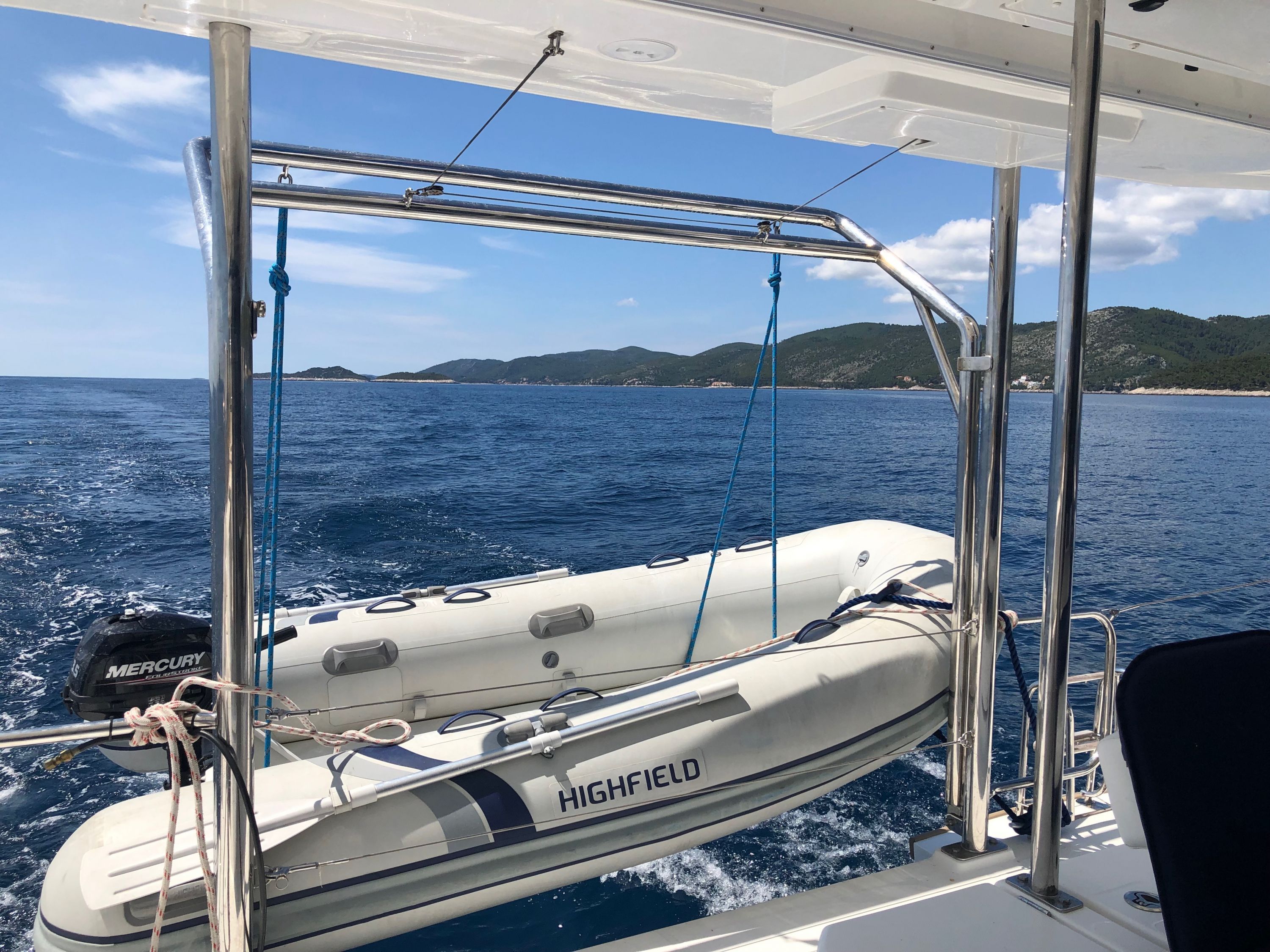 | Outside | Badeleiter, Biminitop, Bootshaken, Cockpitlautsprecher, Cockpitpolster, Cockpittisch, Deckbürste, elektr. Ankerwinsch, elektr. Winsch, Fender, Festmacherleinen, Solaranlage |