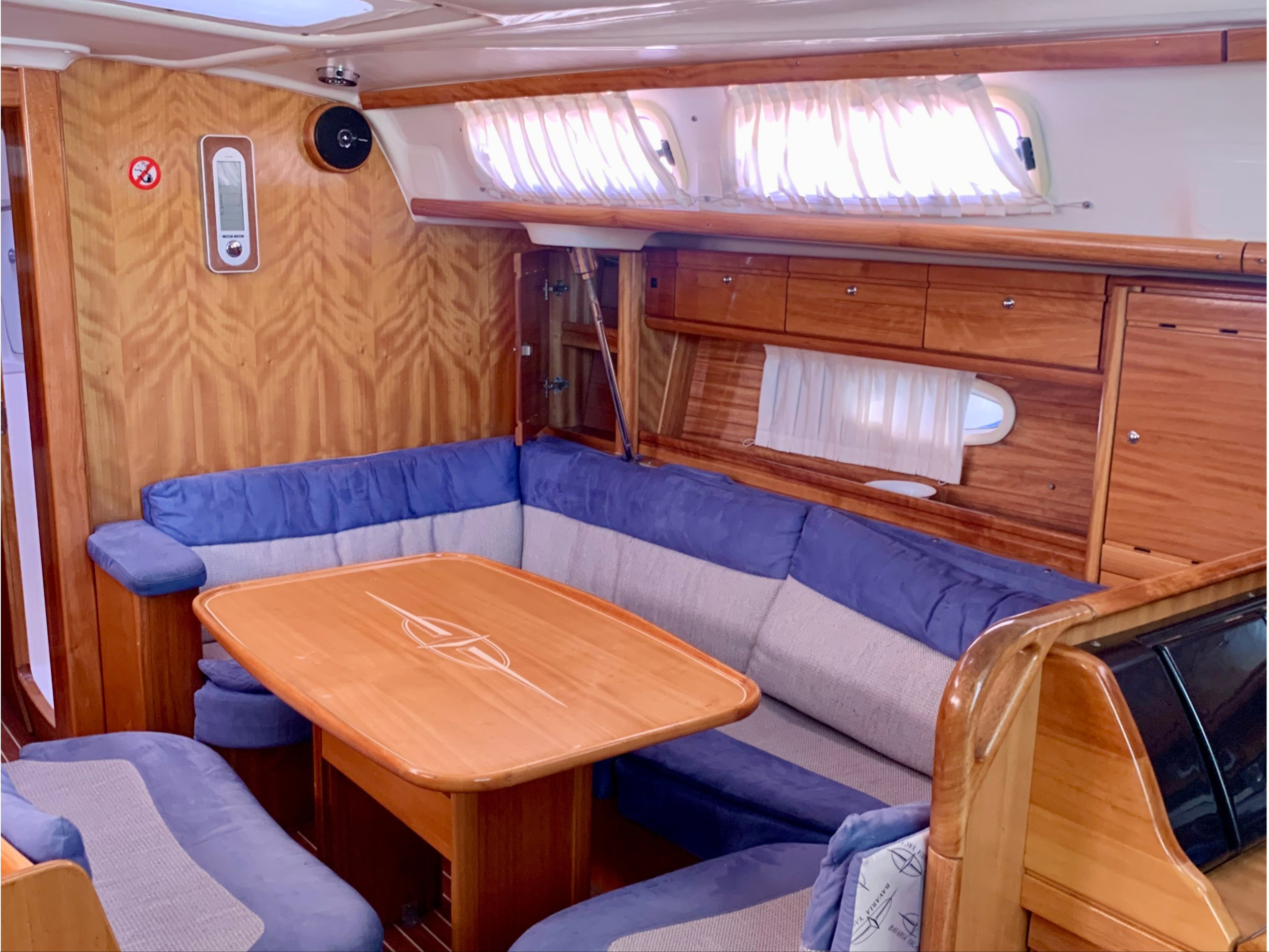 | Navigation | Echolot, GPS mit Kartenplotter im Cockpit, Hafenhandbücher, Seekarten, Sumlog, Windmesser |