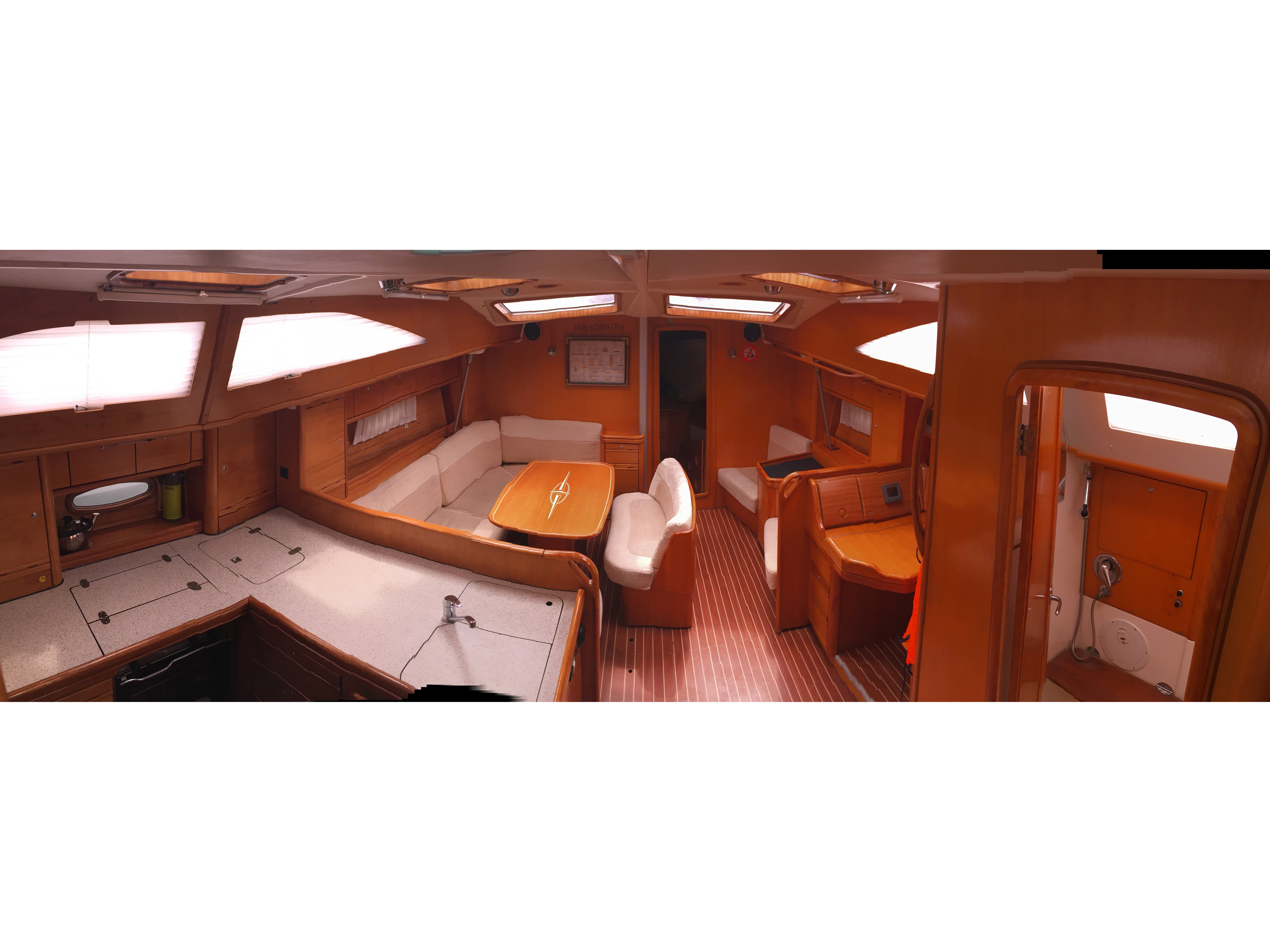 | Outside | Badeleiter, Biminitop, Cockpitdusche, Cockpitlautsprecher, Cockpitpolster, Cockpittisch, elektr. Ankerwinsch, Fender, hydraul. Gangway, Solaranlage, Sprayhood, Teak im Cockpit, Teakdeck, Treibanker, Windex |
